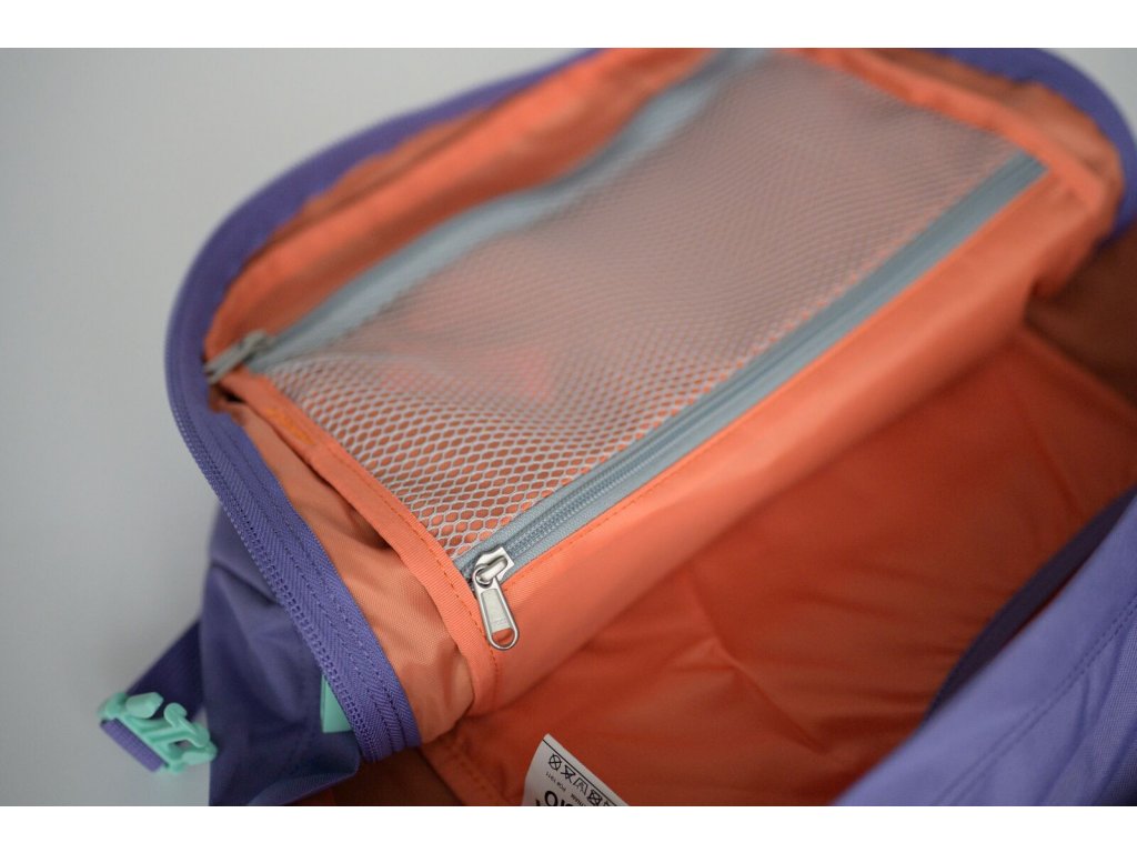 - Hlavný úložný priestor so sťahovacími popruhmi a veľkým sieťovaným vreckom napr. na košele