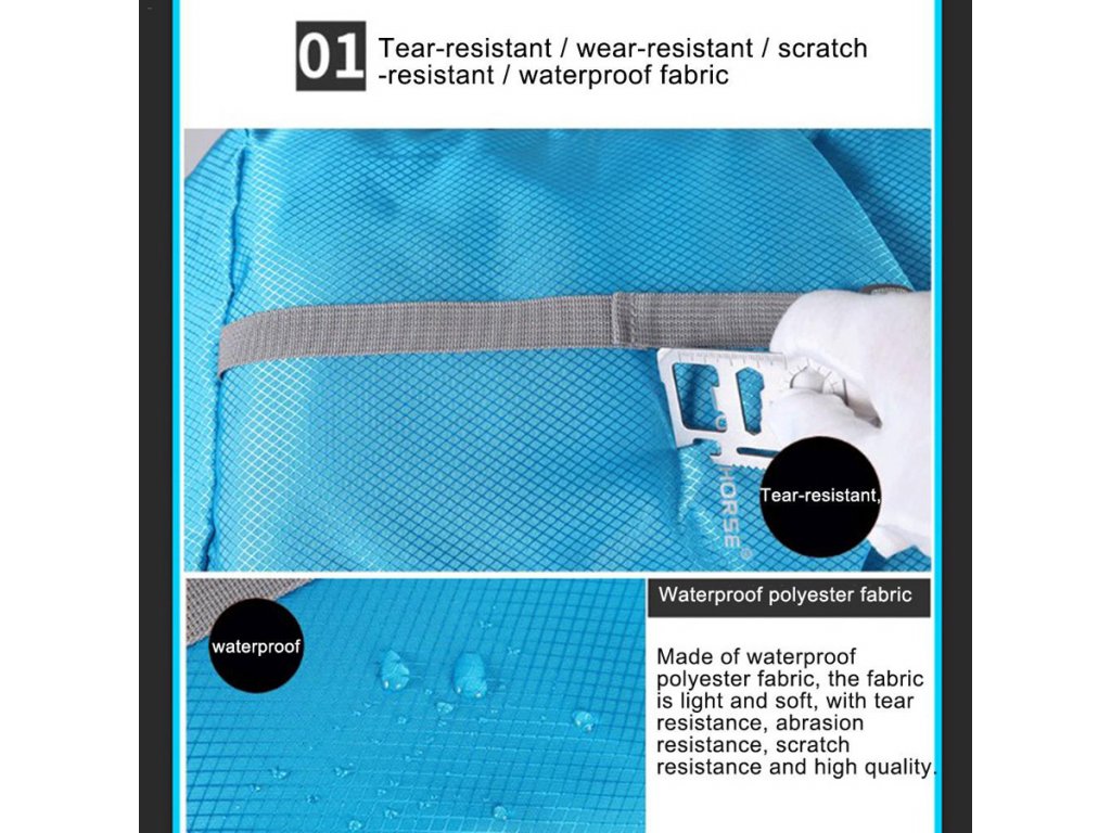1. Vlastnosti: vodotesný dizajn, odolný proti dažďu, veľká kapacita, ľahký, skladací, super prenosný.
