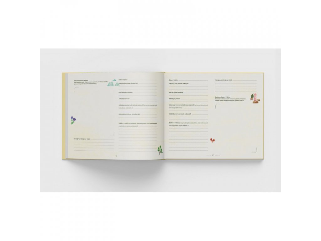 Kniha Naše výlety je rozdelená do siedmich tematických kapitol a v každej si môžete spoločne naplánovať, kam by ste sa chceli vydať. Chcete navštíviť vrchol hory, prírodnú atrakciu alebo historickú pamiatku? Alebo vás to tiahne k vode, do zaujímavých miest, za zábavou a kultúrou, prípadne vás lákajú športové výlety? Inšpirujte sa kreslenými mapami a zapíšte si do knihy, kam by ste chceli ísť.