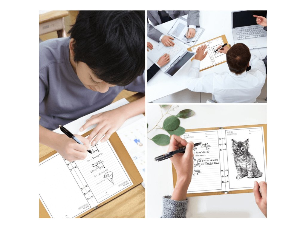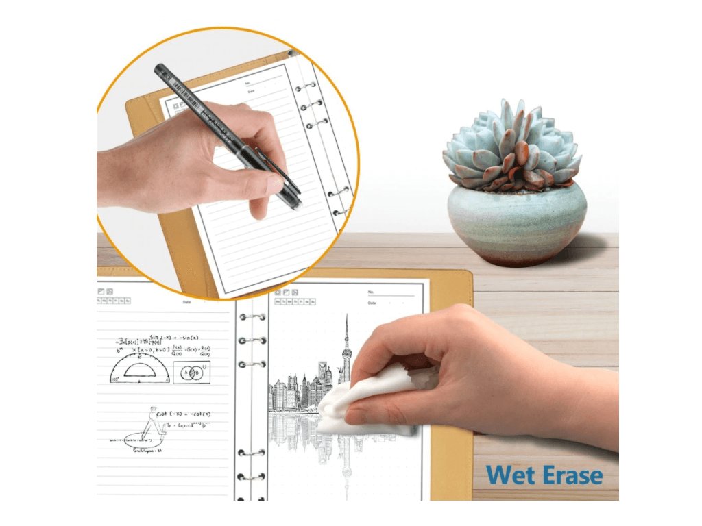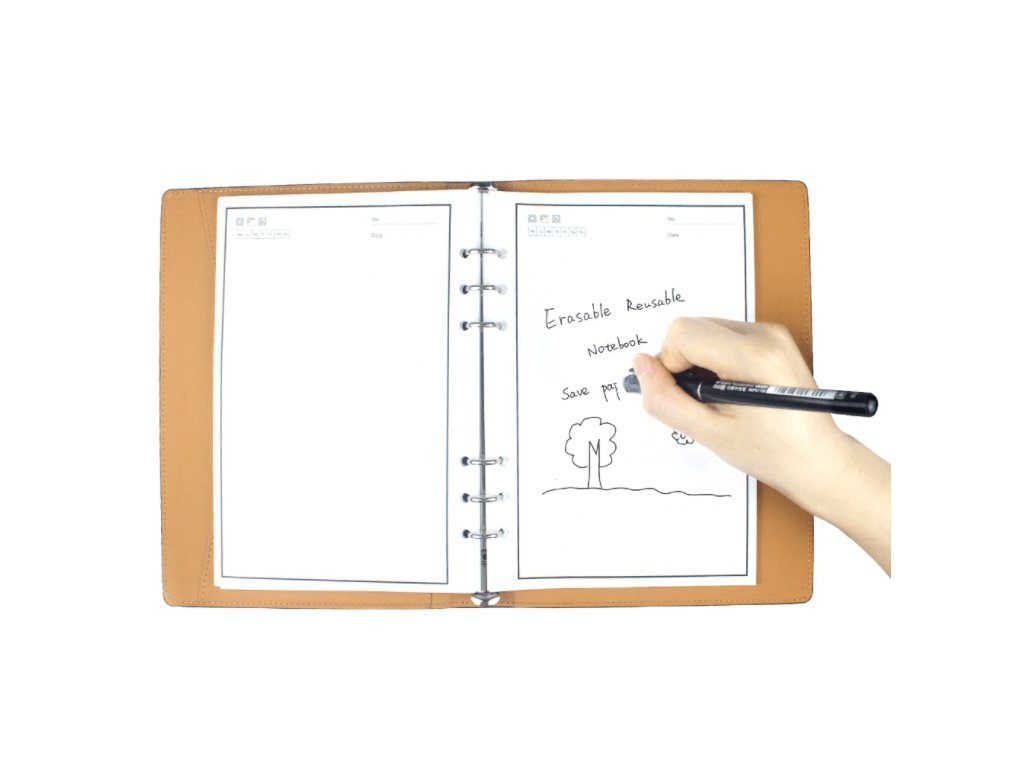 Pomocou špeciálneho pera sa vaše písanie drží na stránkach ako na bežnom papieri, ale pridajte kvapku vody alebo použite fén a všetky poznámky zmiznú ako mávnutím čarovného prútika. Papier na opakovane použiteľné zápisníky je vyrobený zo syntetických materiálov. To znamená z technológie bez využitia stromov vo výrobnom procese. Ekologické riešenie tohto poznámkového bloku, ktoré vám bráni vo využívaní nadmerného spotrebovávania papiera, môže poslúžiť ako na nácvik, tak písanie poznámok. Prepisovateľný poznámkový blok je určený pre ľudí, ktorí chcú, aby nekonečne opakovane použiteľný digitálny zápisník vydržal roky, ak nie celý život.