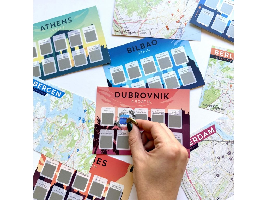 Originálne stieracie karty vám pomôžu zdokumentovať vaše cesty a uchovať dôležité spomienky z ciest. Tieto karty obsahujú 60 miest, pričom každé z miest obsahuje ďalších 10 miest a atrakcií, ktoré nemôžete vo vybranom meste vynechať. Je to skutočne ideálny cestovný doplnok pre tých, ktorí vždy túžia navštíviť nové vzrušujúce miesta a zároveň spomínať na svoje cesty nepretržite.
