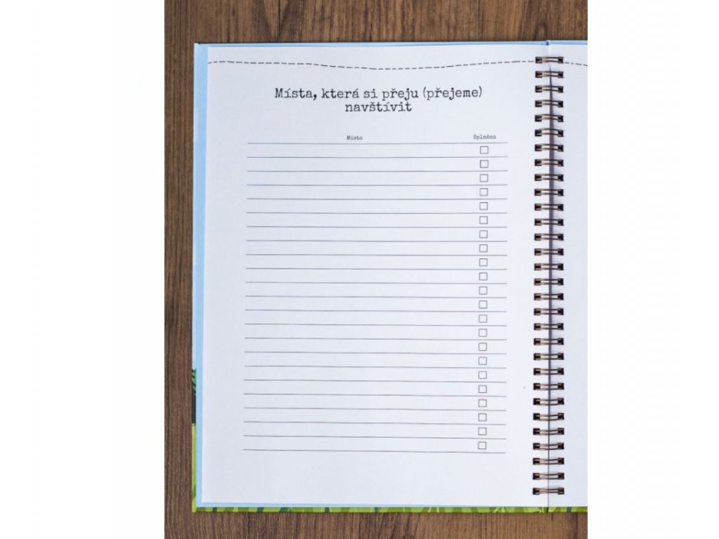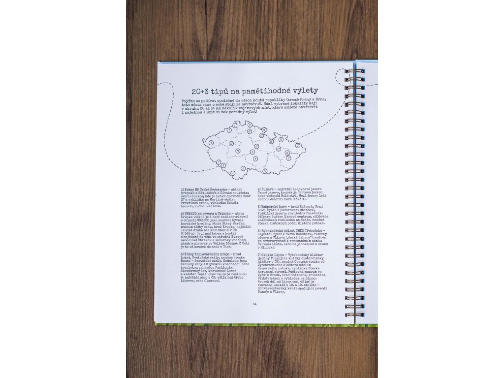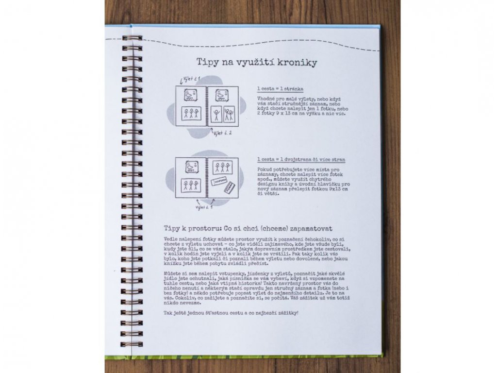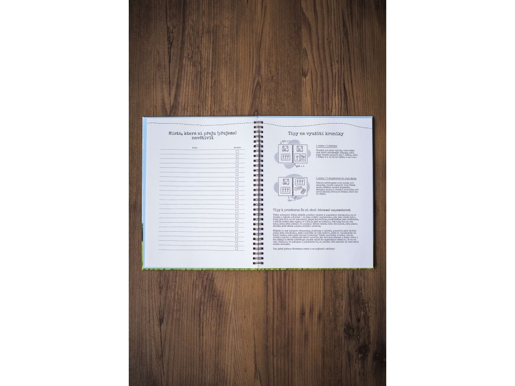 Výletný kronika Českom disponuje dostatkom priestoru pre zaznamenanie si najkrajších zážitkov z ciest po ČR. Zahŕňa stránky pre plánovanie cesty, mapu Česka, tipy a triky na výlety, priestor pre fotky alebo ďalšie pekne spracované stránky.