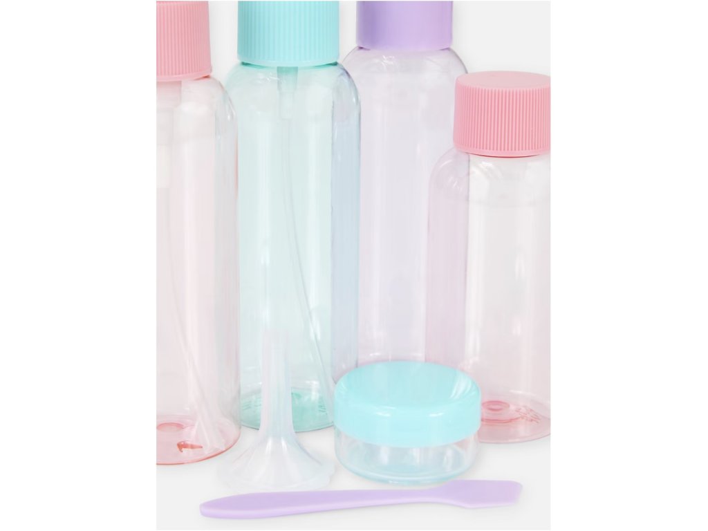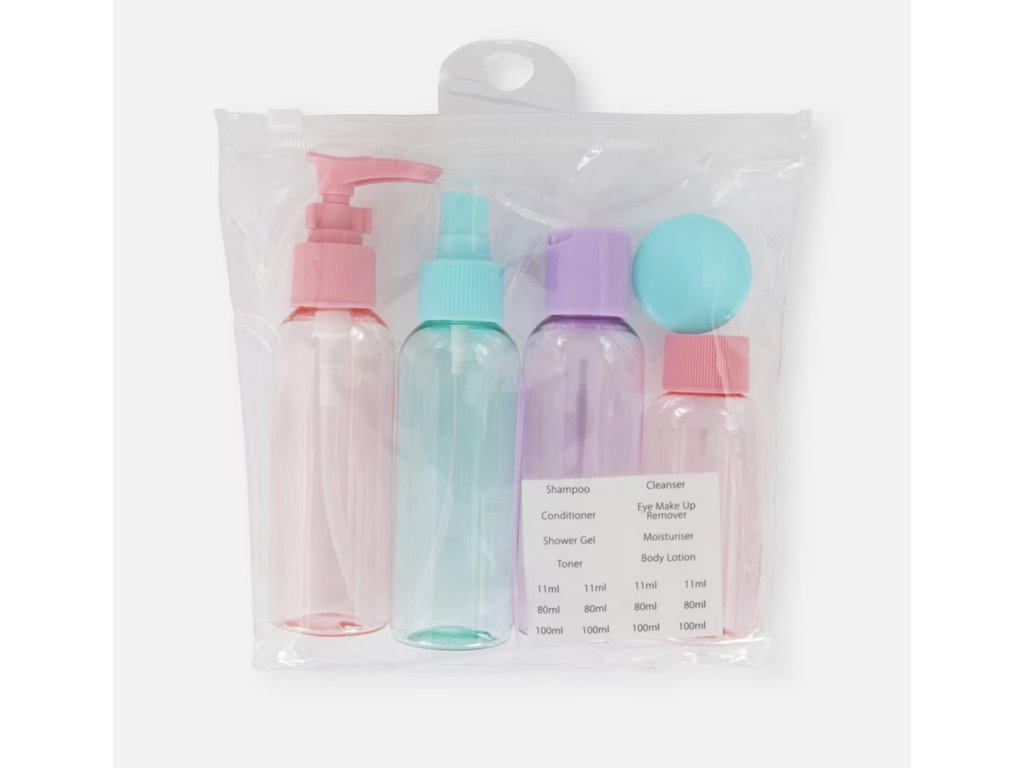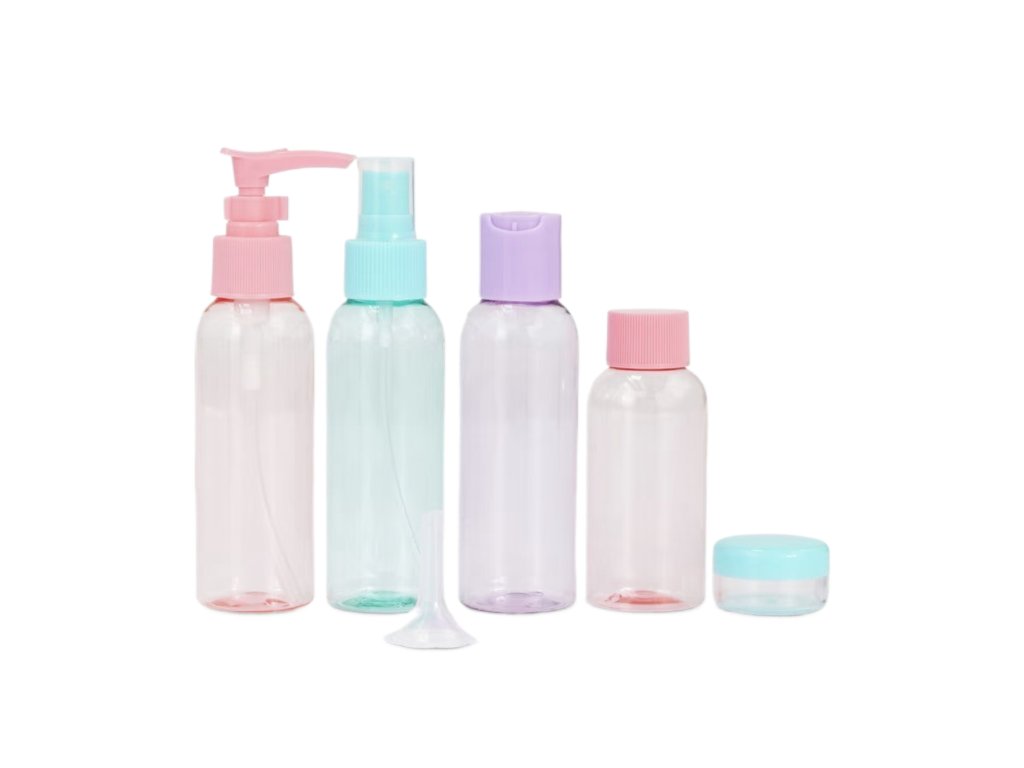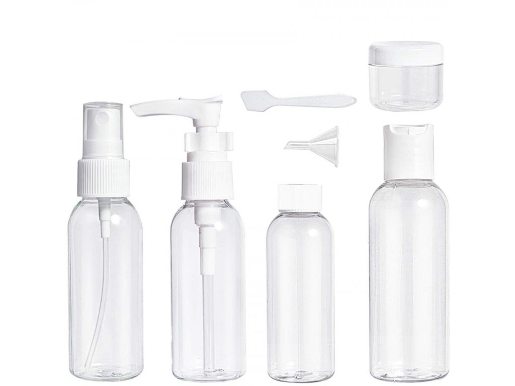 Priehľadné fľaštičky využiteľné na kozmetiku sú ideálne pre každého začínajúceho i pokročilého cestovateľa. Vďaka rozmanitosti cestovateľskej sady využijete fľaštičky na akýkoľvek druh kozmetických prípravkov.