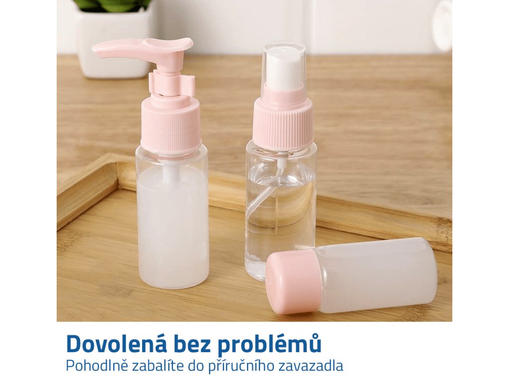 Priehľadné fľaštičky využiteľné na kozmetiku sú ideálne pre každého začínajúceho i pokročilého cestovateľa. Vďaka rozmanitosti cestovateľskej sady využijete fľaštičky na akýkoľvek druh kozmetických prípravkov.