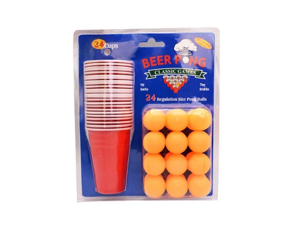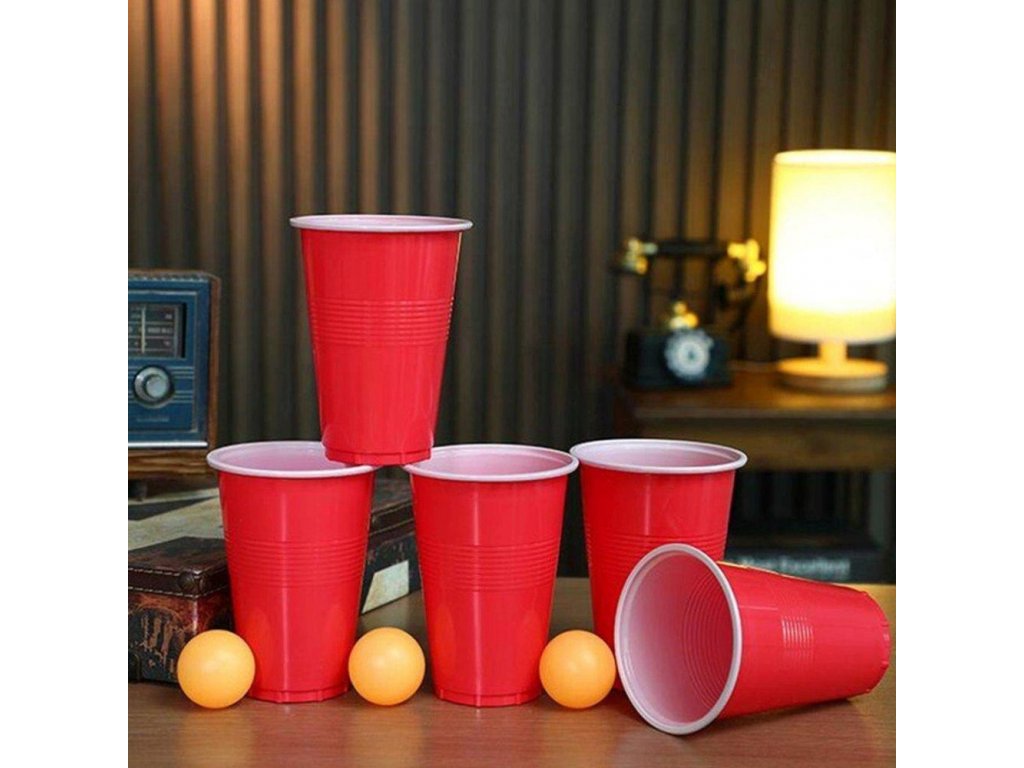 Súprava na Beer Pong je dodávaná s 24 x loptičkami a 24x kelímkami na pivo. Tieto tégliky a guličky sú vyrobené z vysoko kvalitného plastu, bezpečné a spoľahlivé. Pevné materiály zaisťujú ich odolnosť proti praskaniu a deformácii.