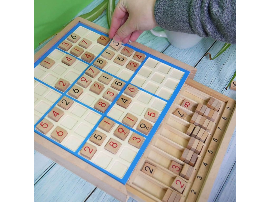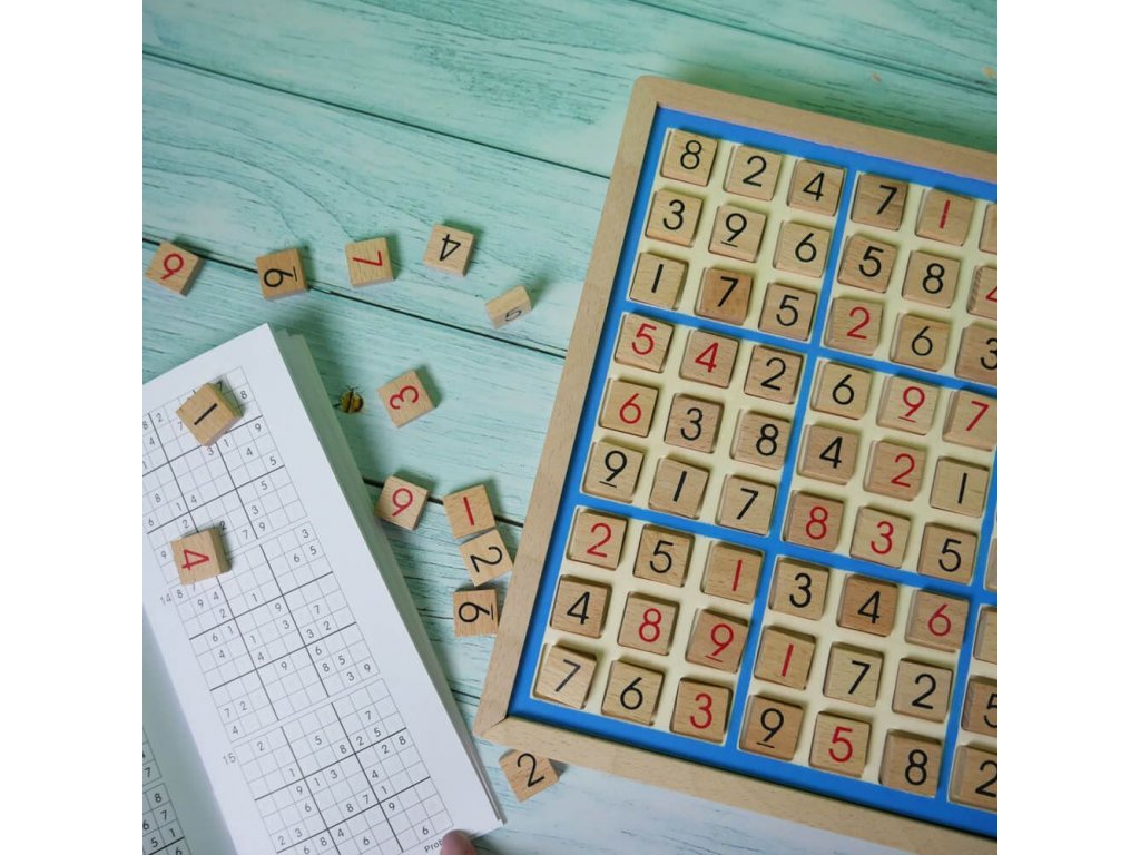 Dosková hra sudoku je klasická logická hra, ktorá zabaví celú rodinu! Táto kompletná sada má všetko, čo k hre potrebujete, a obsahuje celú brožúru hádaniek, drevené doštičky s číslami a hernú dosku s úložným priestorom. Táto zábavná hra s číslami, ktorej počiatky siahajú až do konca roku 1700, podporuje zručnosti kritického myslenia a zabaví sa u nej deti aj dospelí.