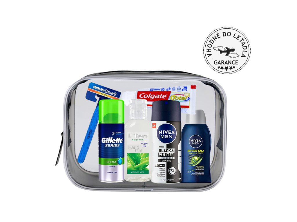 Každý cestovateľ sa chce na svojich cestách cítiť sviežo a upravene. A preto sme pre vás pripravili cestovateľskú sadu, ideálnu pre každého cestovateľa. Nájdete v nej všetko potrebné pre svoju starostlivosť o fúzy, zubnú pastu Colgate alebo ústnu vodu Listerine. Samozrejme nesmú chýbať základné potreby ako sprchový gél 2v1 značky Nivea Men a antibakteriálny gél na ruky.