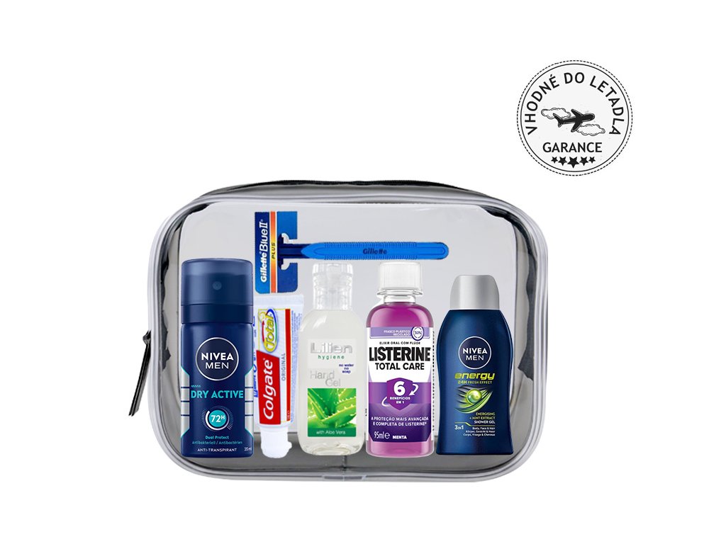 Keď už sa vydáte za prírodou, k moru alebo len tak na výlet, spoľahnite sa, že budete mať k dispozícii úplne všetko v jednej kozmetickej sade. Vašu mužnosť utvrdí antiperspirant aj sprchový gél od značky Nivea Men a holítko Gillette. O dokonalú čistotu bez baktérií sa postará antibakteriálny gél Lilien a ústna voda Listerine.