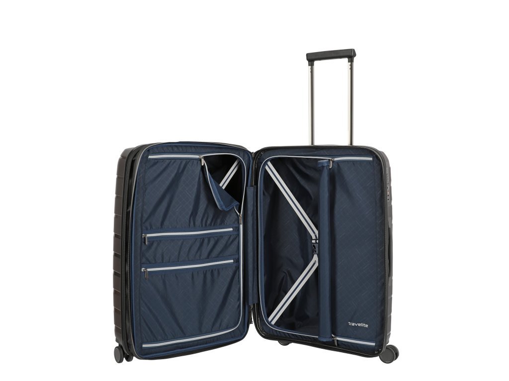 Kufor Air Base je vyrobený z odolného a zároveň ľahkého polypropylénu, vďaka čomu sa váš výlet stane zážitkom za každých okolností. Povrch kufra je tiež odolný voči poškriabaniu. Okrem neuveriteľne nízkej hmotnosti s extrémne vysokou odolnosťou proti nárazu kufor Travelite taktiež vizuálne boduje svojim jedinečným povrchom. Sofistikovaná súhra drsných a lesklých prvkov okamžite zaujme.