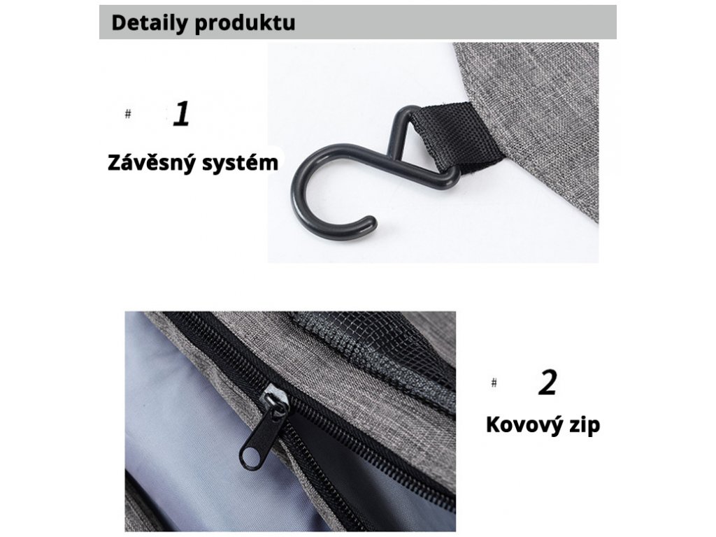Závesná kozmetická taška je vhodná nielen pre vaše kozmetické prípravky a pomôcky, ale je vhodná aj napríklad na spodnú bielizeň, písacie potreby a ďalšie pre vás dôležité pomôcky.