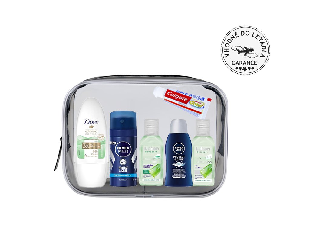 Kozmetická sada ideálna pre pár, ktorý rád cestuje a spoločne rád objavuje nové kúty sveta. K tomu ale potrebujú aspoň základnú kozmetiku. Sada obsahuje: pre pánov dezodorant a sprchový gél so šampónom 3v1. Dámy v sade nájdu antiperspirant, sprchový gél a šampón na vlasy značky Lilien. Obaja potom spoločne ocenia a využijú zubnú pastu Colgate.