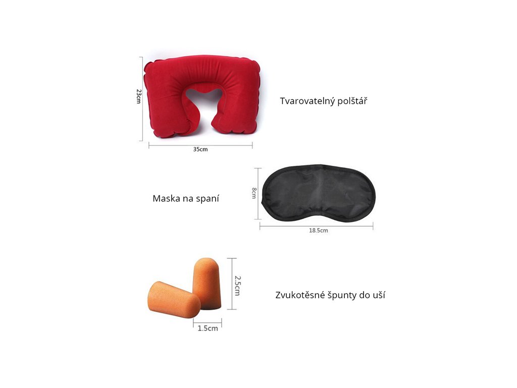 Cestovná sada Spáčik: cestovný vankúš, maska na spanie, štuple do uší