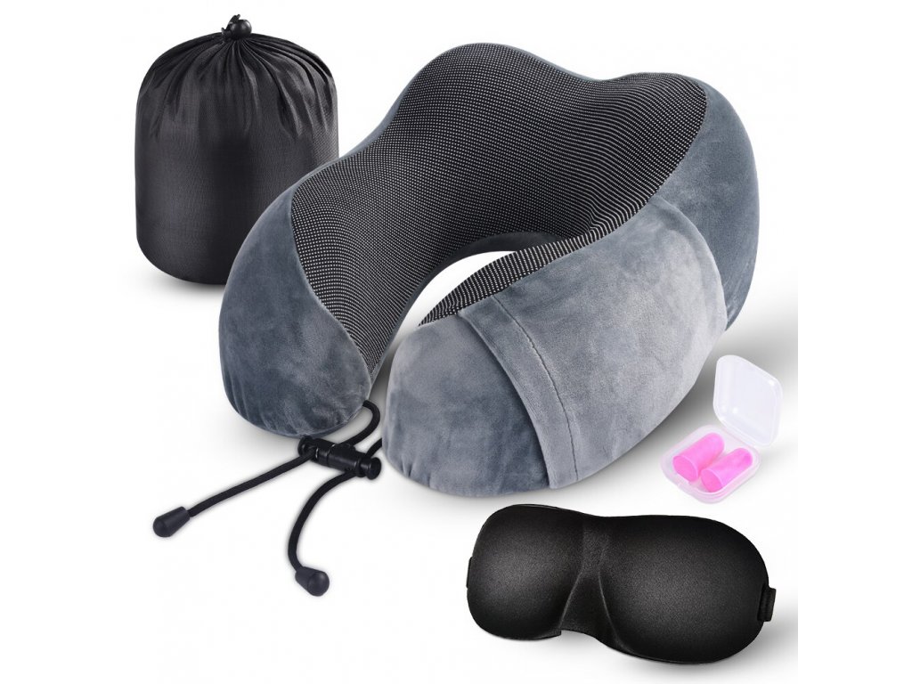 Cestovný vankúš do lietadla s pamäťovou penou + maska na oči + štuple