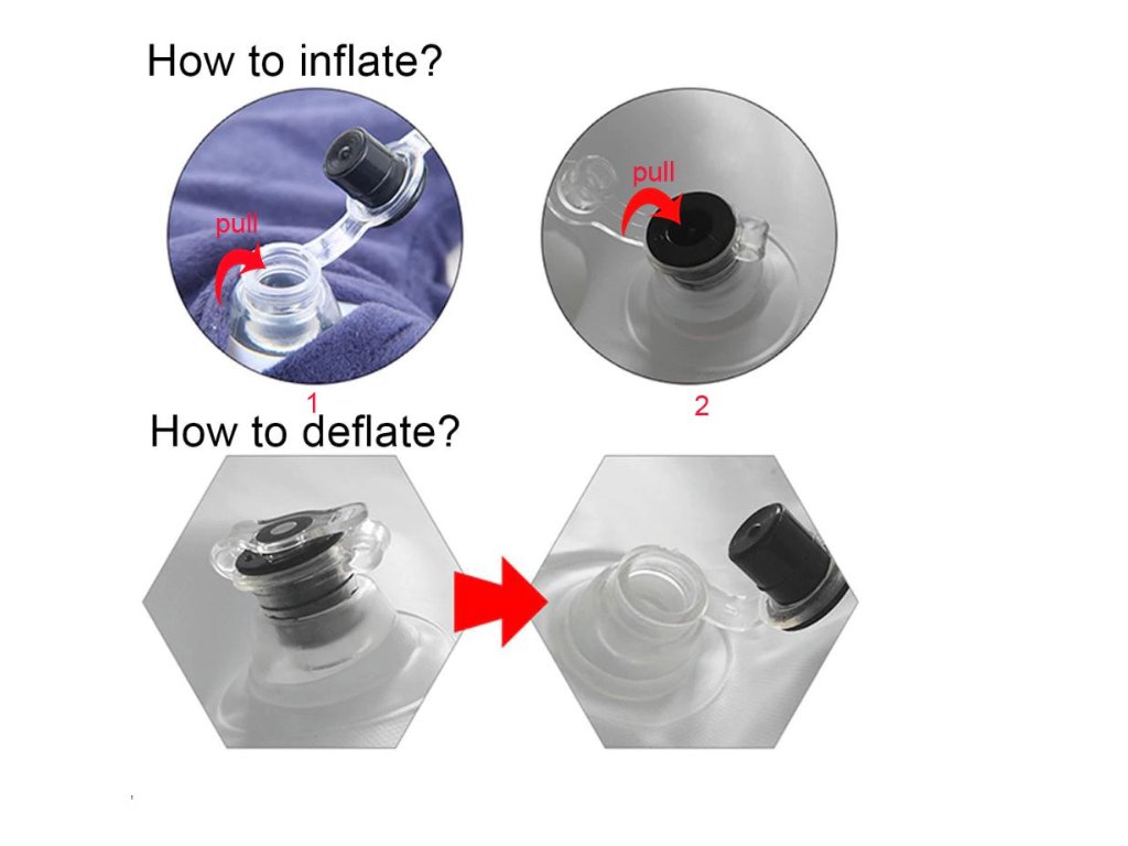 Nafukovací vankúš za krk v tvare písmena U nafúknete do niekoľkých sekúnd pre rýchle pohodlie. Vankúš môžete vyfúknuť a prenášať v príručnej batožine. Nie je potrebné ďalšiu batožinu na prenášanie. Vstavaná konštrukcia ventilu zabraňuje úniku vzduchu.