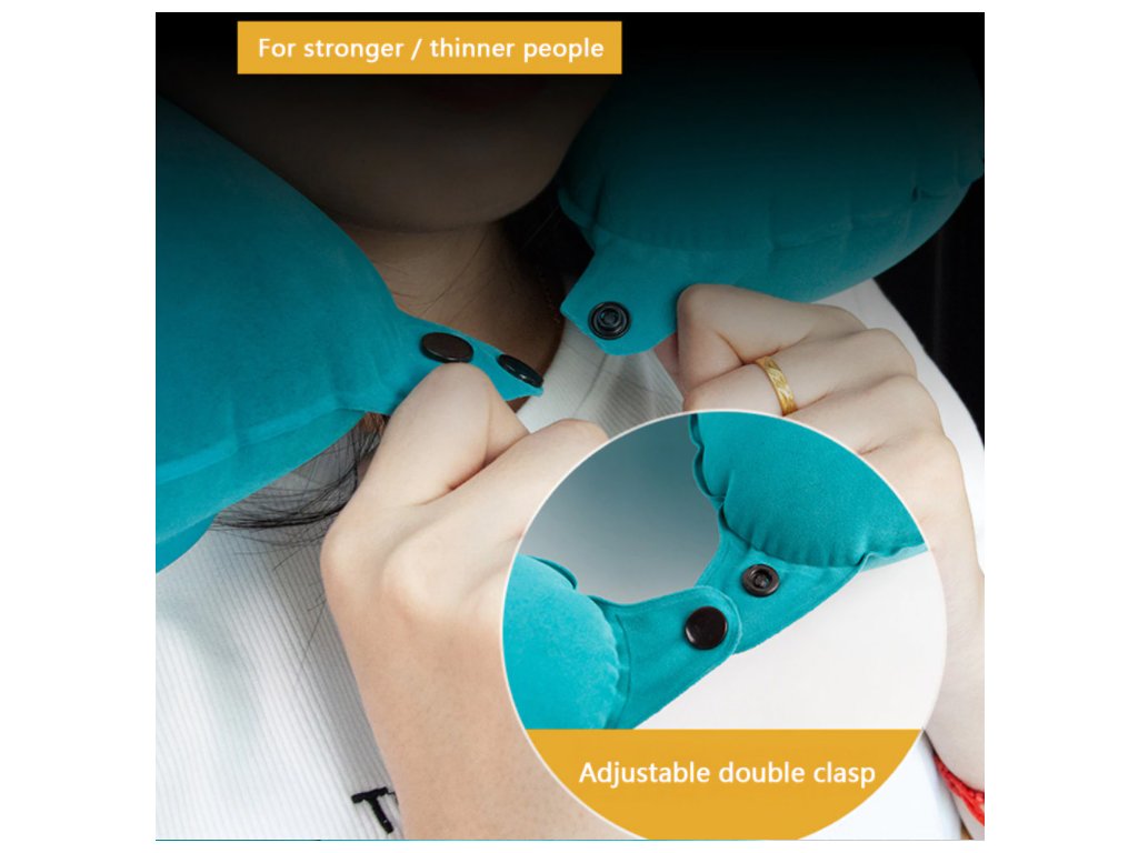 Samonafukovací cestovný vankúš udržuje hlavu vo vzpriamenej polohe a udržuje správne vyrovnanie krku. Môžete ho nafúknuť, bez toho aby ste fúkali do vzduchového ventilu ústami, jednoducho stlačte automatický systém nafukovania na približne 30 - 45 sekúnd. Pozíciu podpory môžete upraviť podľa svojich predstáv, bez toho aby ste vankúš museli dávať dole z krku.