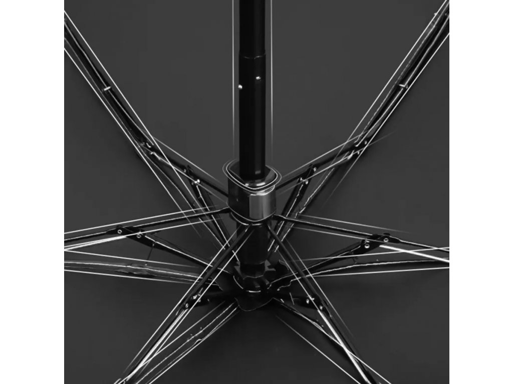 Dáždnik je obohatený 6 rebrami vystuženými hliníkovými vláknami, aby odolal silným nárazom bez otáčania naruby.