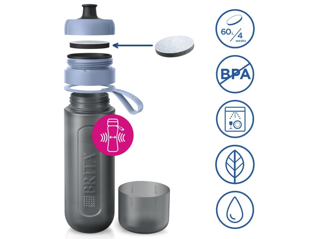 Filtračná fľaša BRITA Fill&Go Active využíva inovatívny filter BRITA MicroDisc, ktorý obsahuje prírodný uhlík z kokosových škrupín. Tento filter dokáže účinne znížiť obsah chlóru a ďalších látok, ktoré negatívne ovplyvňujú chuť vody, zatiaľ čo zachováva dôležité minerály ako horčík a vápnik. Súčasťou balenia je vymeniteľný filter, ktorý vydrží až 4 týždne, čo zodpovedá približne 60 litrom filtrovanej vody.