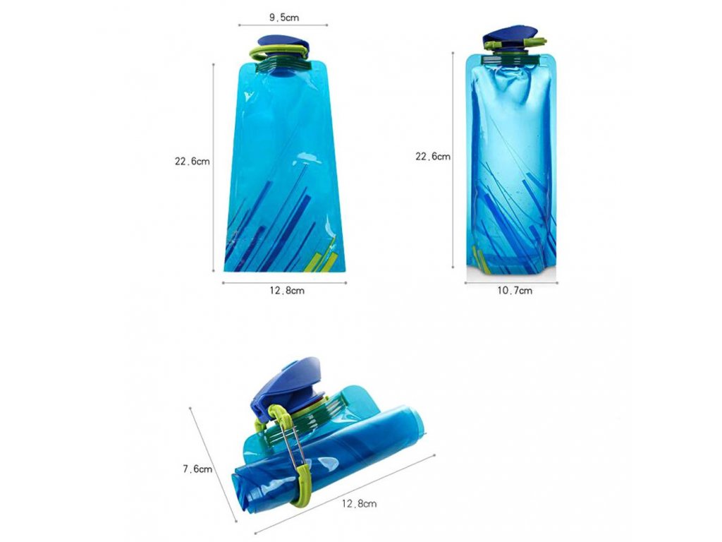 Skladacia fľaša je ideálna pre cestovanie s príručnou batožinou, počas športového tréningu alebo napríklad k víkendovej turistike. A prečo si túto skladaciu fľašu zaobstarať? Fľaša pojme až 600 ml vody (prípadne iného nápoja). Plná veľkosť je 13 x 26 cm, ale po jej vyprázdnení je neuveriteľne skladná a zaberie minimum miesta. Vďaka praktickému uzáveru sa budete môcť napiť i napríklad počas výšľapu do hôr alebo pri tréningovom procese. Veľmi užitočná je tiež karabínka, vďaka ktorej si fľašu môžete pripnúť na batoh. Skladaciu fľašu skrátka môžete využiť pri všemožných aktivitách. A čo viac, je veľmi jednoduchá na údržbu.