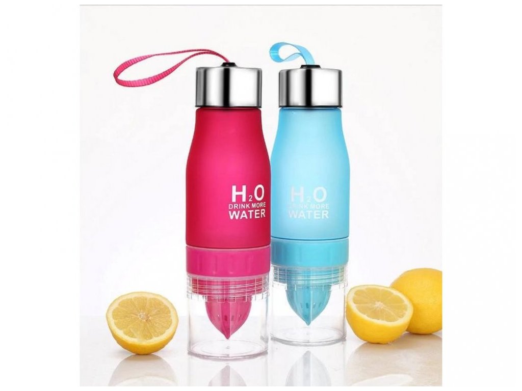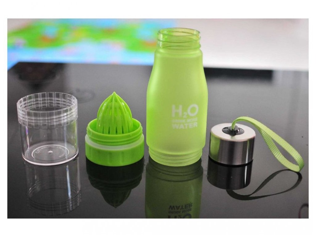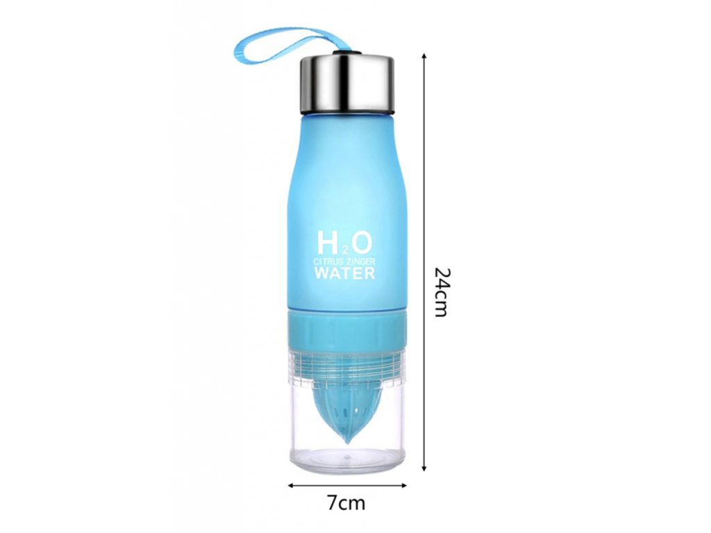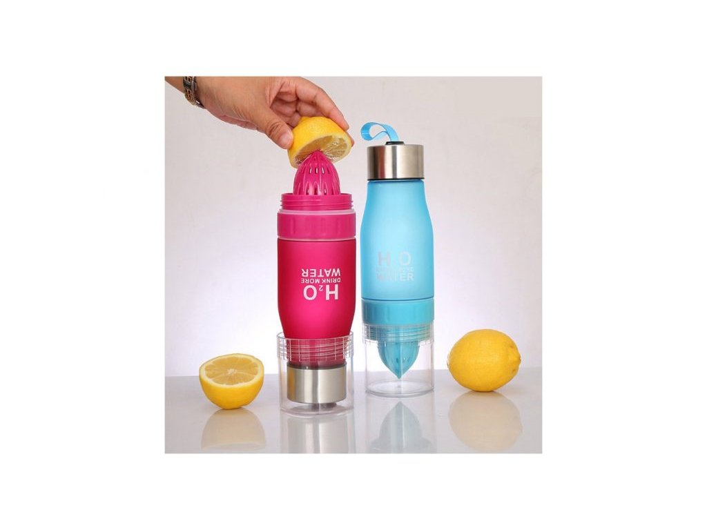 Odskrutkujte spodnú časť fľaše a postavte fľašu hlavou dole na stôl. Citrón alebo iný citrusový plod rozkrojte na polovicu a odšťavnite ho pomocou integrovaného odšťavovača priamo do fľaše. Spodnú časť priskrutkujte späť a fľašu otočte. Nakoniec pridajte vodu, zaskrutkujte viečko a poriadne premiešajte. Dobrú chuť!