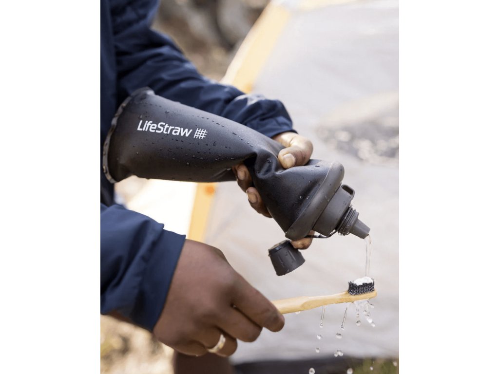 Z diaľky vyzerá systém LifeStraw® ako klasická stlačiteľná fľaša na vodu. Zblízka však rýchlo uvidíte, že obsahuje vysoko účinnú mikrofiltračnú membránu, ktorá vodu účinne čistí. Obsahuje aj veľmi praktický uzáver so zasúvacím otvorom. Nie je potrebné fľašu neustále otvárať a zbytočne zvyšovať riziko šírenia vírusov.
