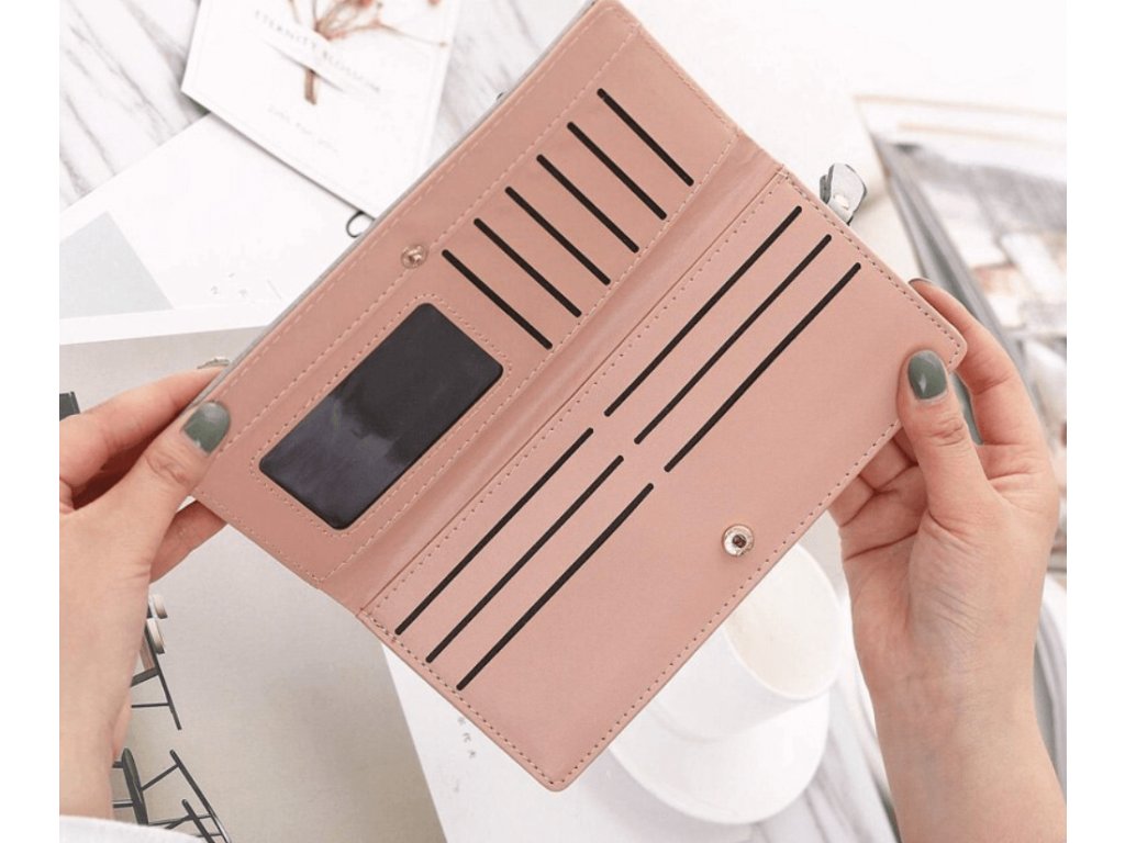 Ružová farba peňaženky a jej rozloženie (1x miesto na fotku):