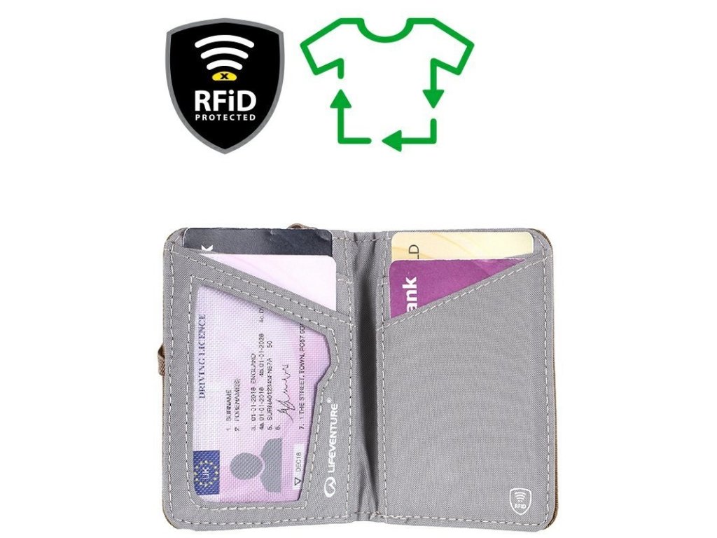 RFiD čipy, ktoré sú súčasťou väčšiny platobných kariet a dokladov totožnosti, vysielajú rádiové signály. Tieto signály môžu byť zneužité zlodejmi pomocou špeciálnych čítačiek. Peňaženka Lifeventure RFiD je vybavená špeciálnym blokovacím materiálom, ktorý tieto signály blokuje a chráni tak vaše osobné údaje pred neoprávneným prístupom.