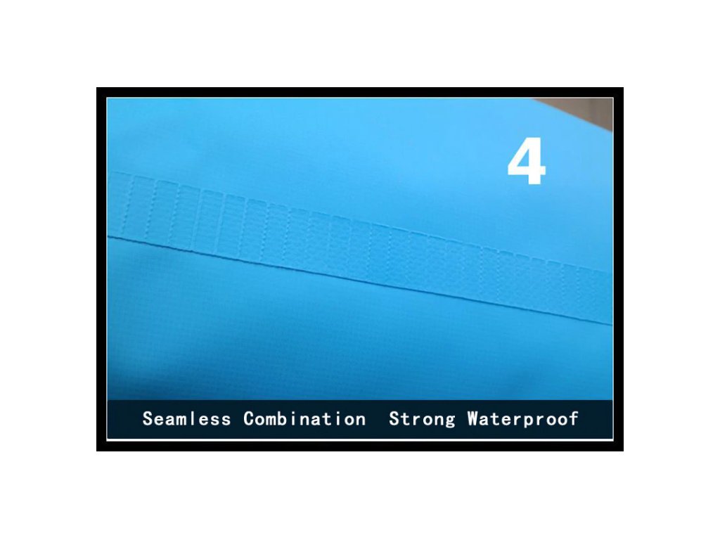 Vložte všetky cennosti do lodného vaku, uchopte hornú tkanú časť, pevne stočte 3 až 5 krát a potom zapnite pracku, aby ste dokončili utesnenie. Celý proces je veľmi rýchly. Vak na vodu veľmi ľahko očistíte vďaka hladkému povrchu.
