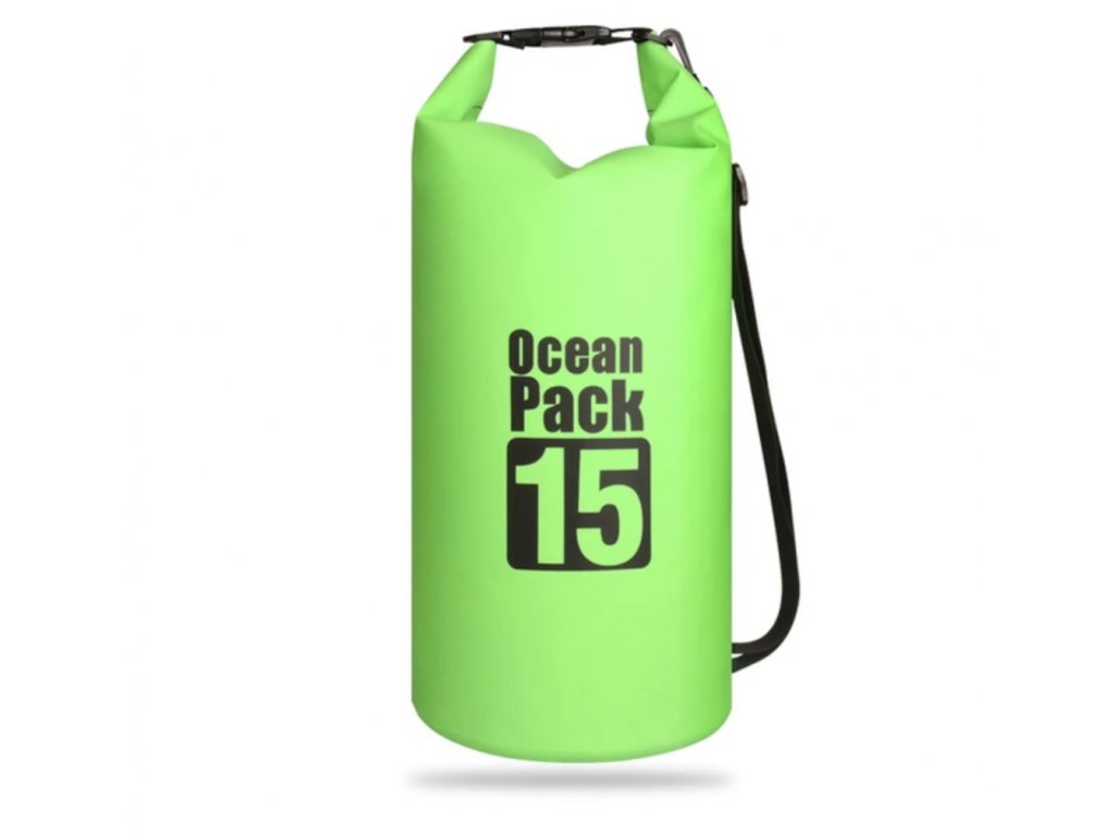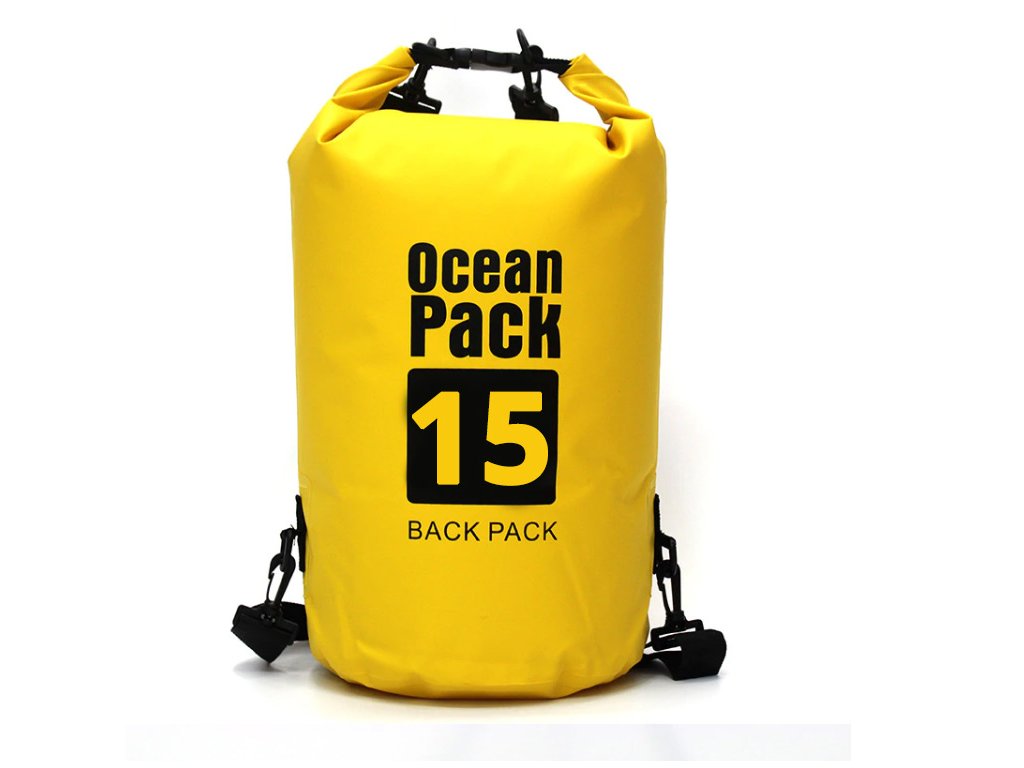 15 litrový lodný vak je dostatočne veľký, aby uschoval všetko, čo potrebujete pre niekoľkodenný výlet. Vhodný pre ochranu oblečenia, obuvi, tabletu, osušky, baterky, ďalekohľadu, slúchadiel, potravín atď.