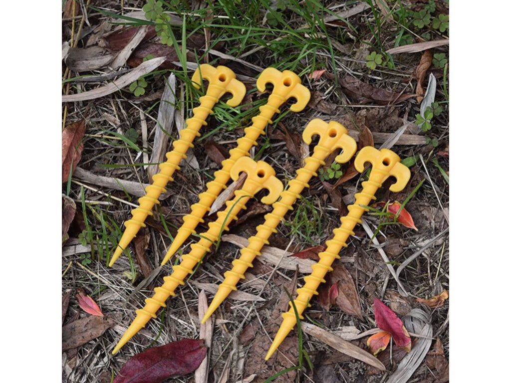 Kolíky na stan, šróbovací, spevnený plast, 5 kusov