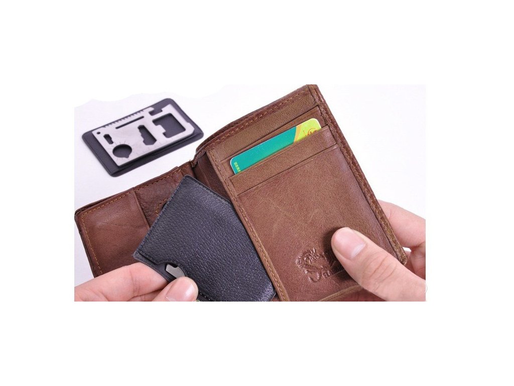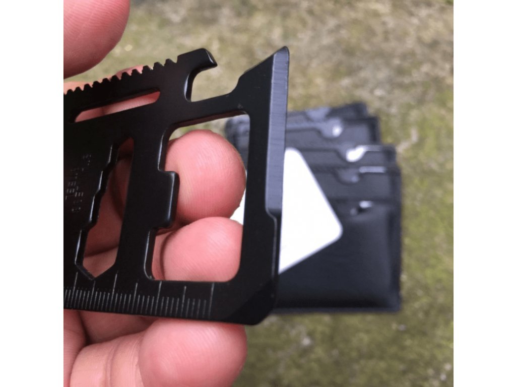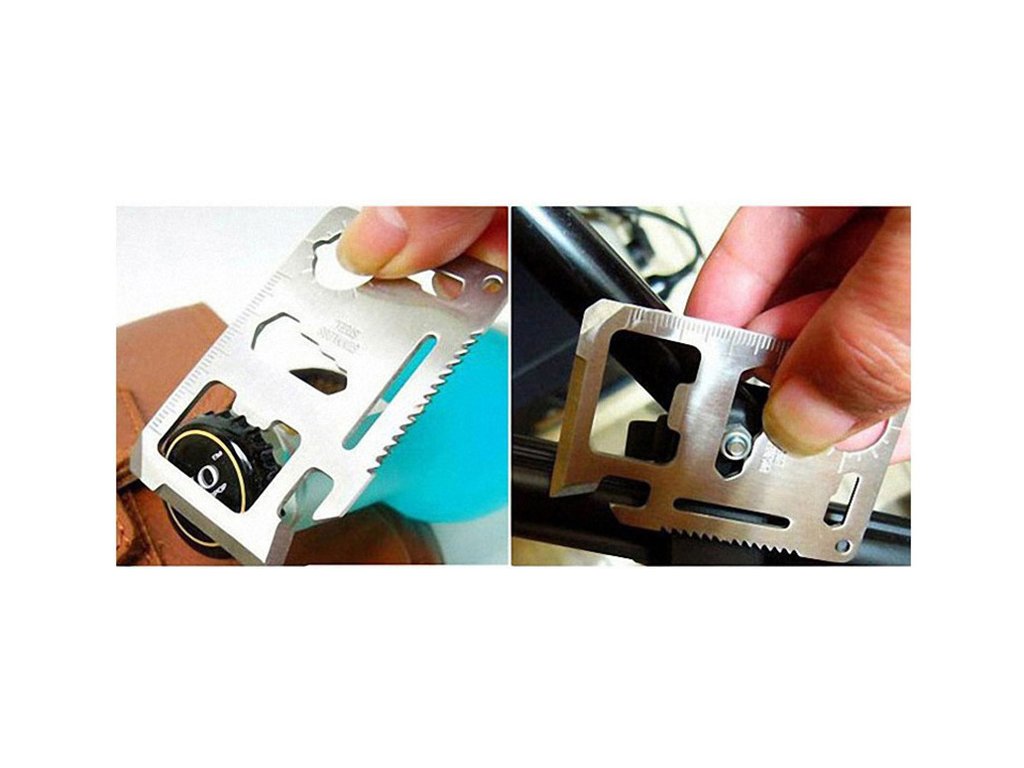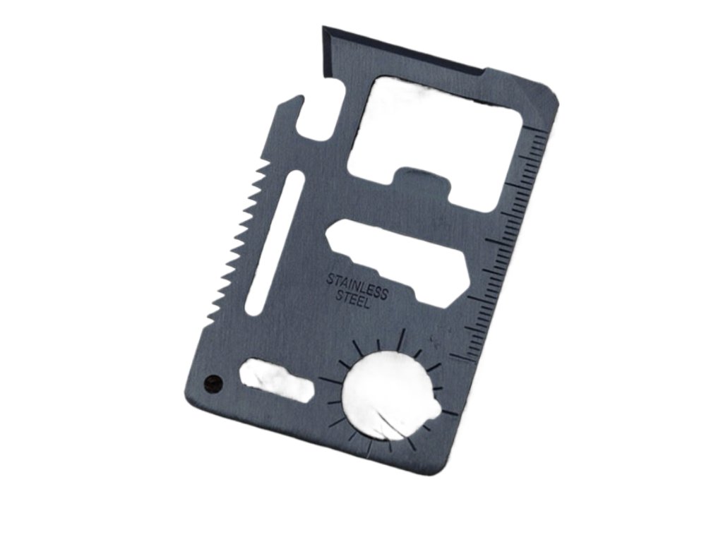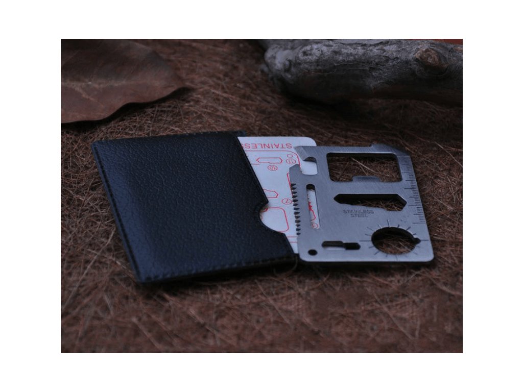 Multifunkčná karta prežitia s 11 užitočnými nástrojmi v jednej kovovej karte veľkosti kreditnej karty plní vďaka svojej rozmanitosti požiadavky aj tých najnáročnejších cestovateľov.