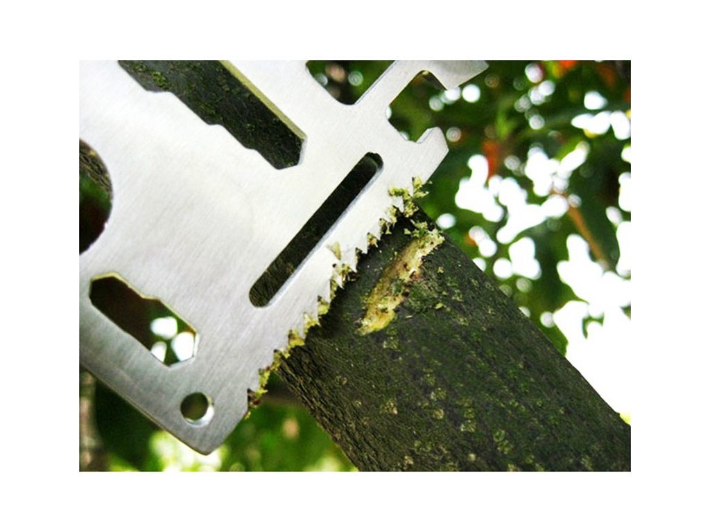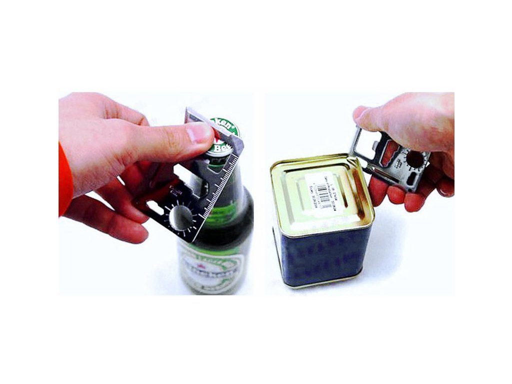 Túto neuveriteľne flexibilnú kartu prežitia možno použiť ako otvárač na konzervy, ostrie, plochý skrutkovač, pravítko, otvárač na fľaše: napríklad na pivo, 4 polohový imbusový kľúč, 2-polohový mbusový kľúč, kľúč na motýlie skrutky, pílový kotúč, kompas indikujúci smer vo vode, otvor na lanko.