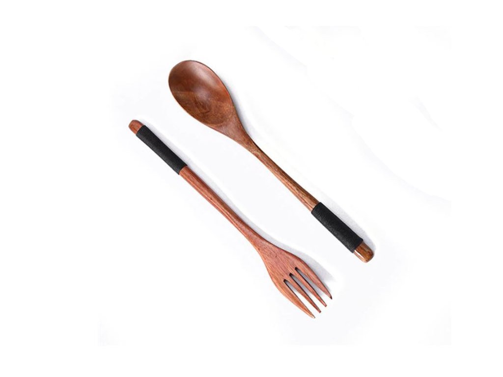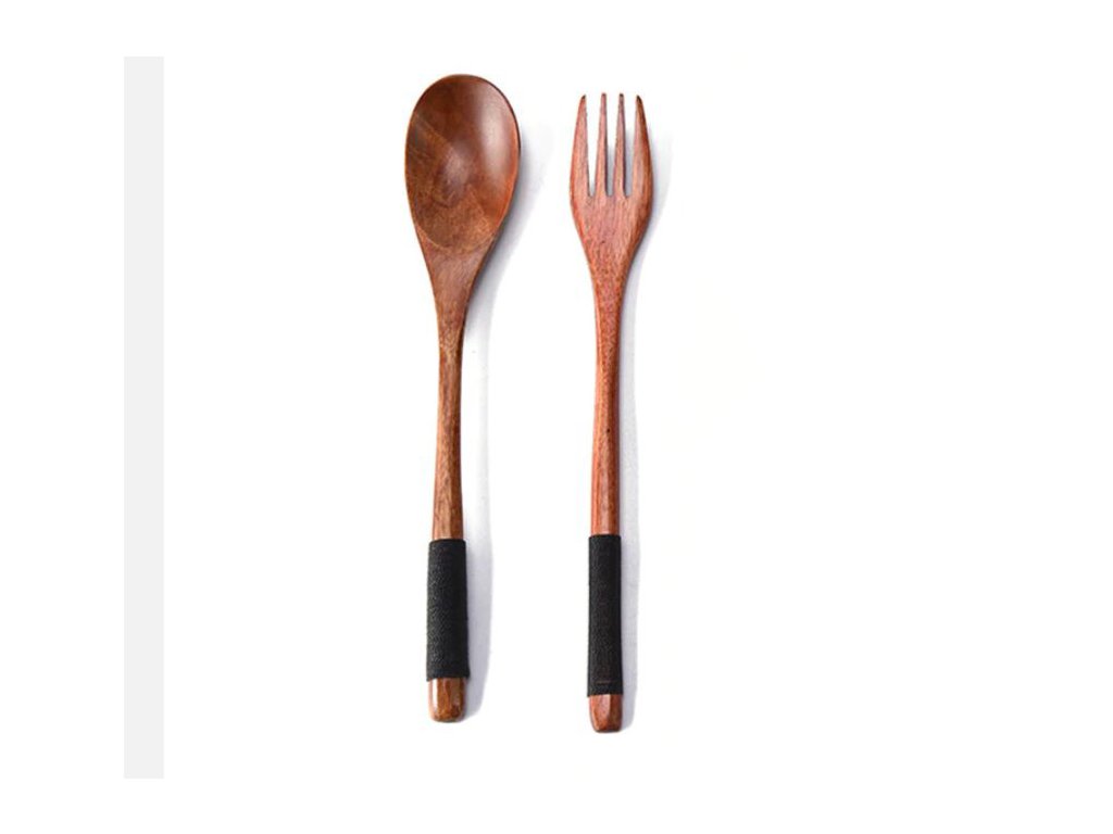 Sada drevenej lyžičky a vidličky je vyrobená z prírodného bambusového dreva, s odolným a pevným telom. Povrch je hladký a čistý. Zároveň neobsahuje škodlivé BPA, PVC alebo ftaláty. Je tak zdraviu nezávadný.