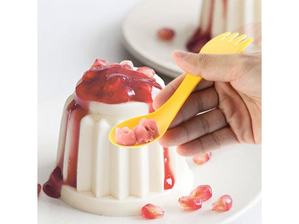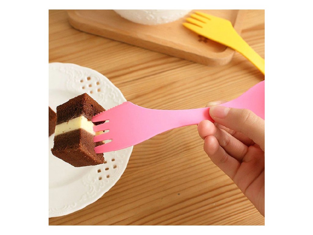 4. Nožík, vidlička, lyžica 3v1 s inovatívnym dizajnom, praktický pre vonkajšie stolovanie