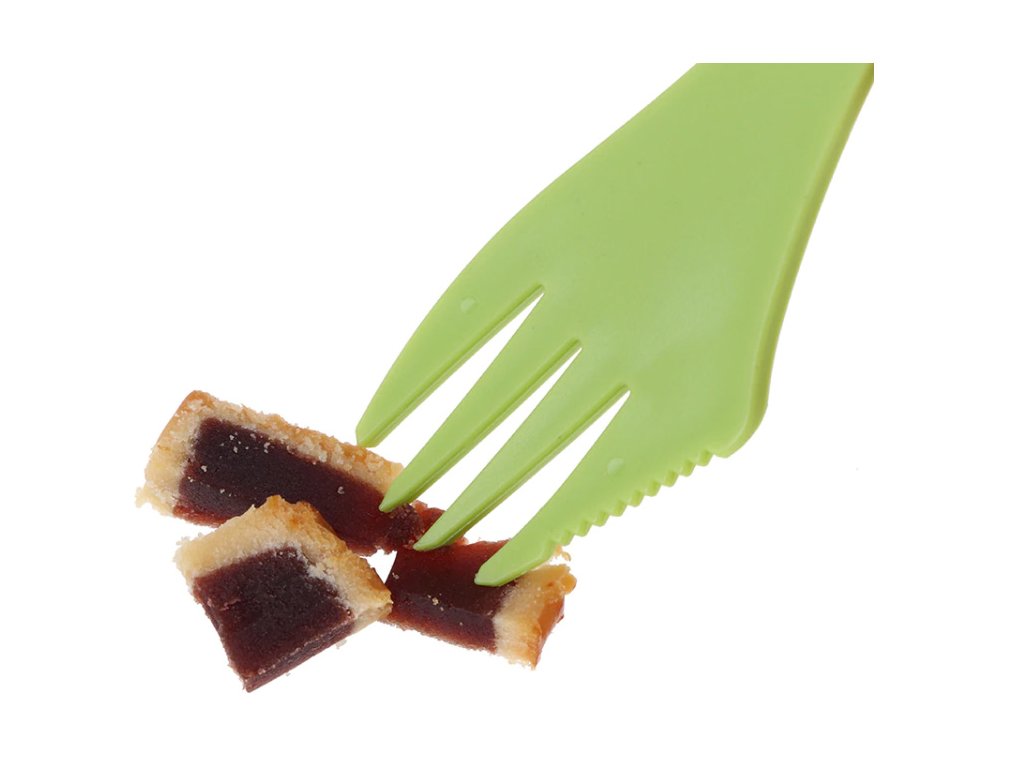 Pri navrhovaní tejto vidličky, lyžice a nožíka v jednom sa výrobca sústredil na extrémne pohodlné použitie pre všetky účely. S lyžicou si môžete vychutnať vašu obľúbenú polievku alebo želé, s vidličkou napríklad údeniny alebo čerstvo ulovenú rybu, a nakoniec môžete využiť tiež nôž na rezanie či lúpanie ovocia a všetkého čo vám príde pod ruku.