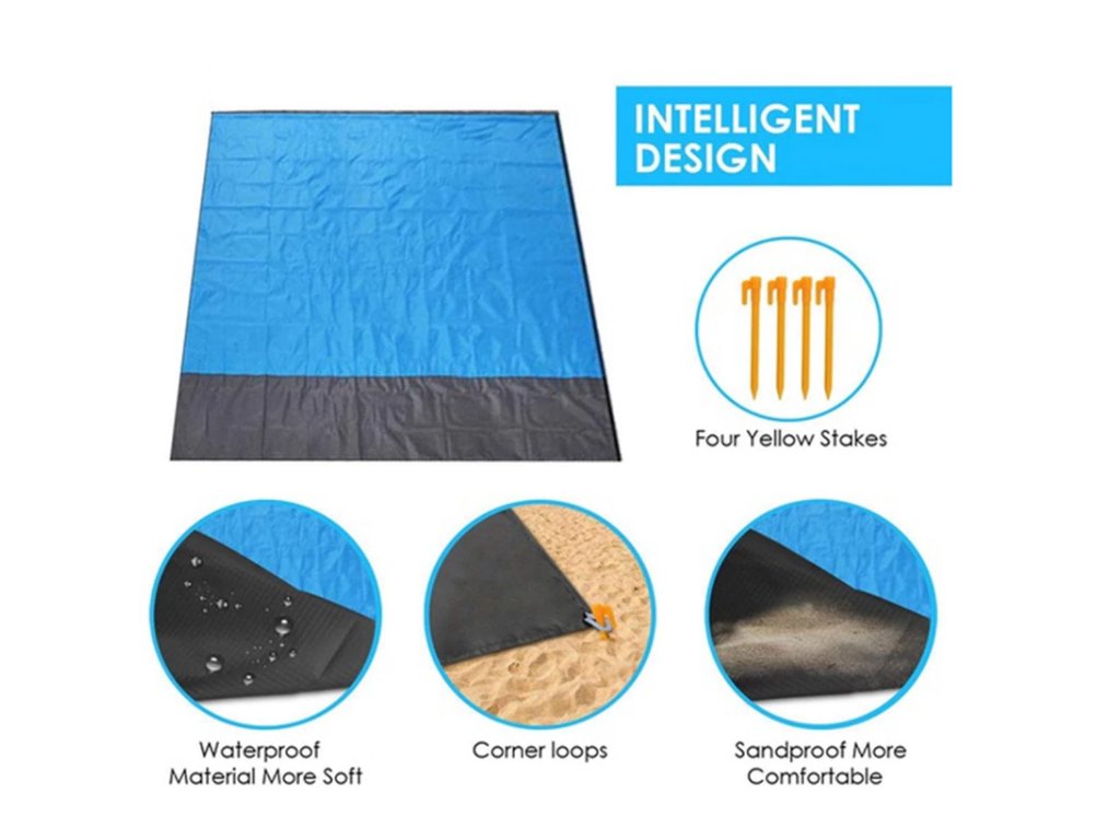 Balenie tejto outdoorovej deky obsahuje aj kolíky, vďaka ktorým sa nebudete musieť báť, že by vám deku odfúkol vietor.