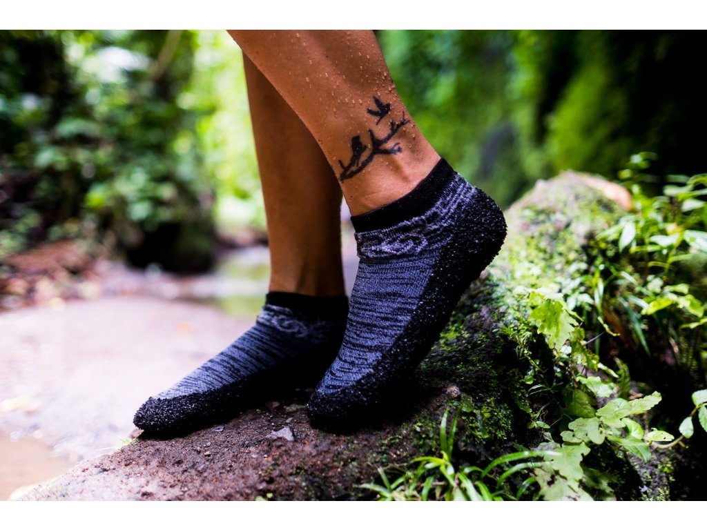 Tieto ponožkoboty Skinners 2.0 nosíme doma aj vonku: v lese, na skalách, na plážach, pri splavovaní rieky aj vo fitku. Poskytujú pocit bosej nohy vďaka tenkej, flexibilnej podrážke, no zároveň chránia pred ostrými kamienkami, špinou aj vlhkosťou. Materiál dýcha a rýchlo schne – ideálne aj do mesta alebo ako ochrana proti pošmyknutiu po sprche pri bazéne. Model vyrobený v Českej republike navyše prekvapí pohodlným strihom a precíznym spracovaním.