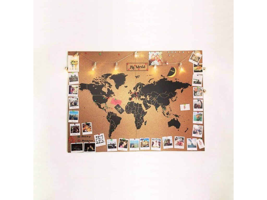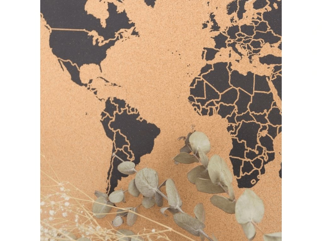 Korková mapa sveta je ideálnym doplnkom pre všetkých milovníkov cestovania. Slúži nielen ako dizajnová dekorácia, ale aj ako osobná nástenka, na ktorú si môžete pripínať fotografie, poznámky alebo označiť miesta, ktoré ste už navštívili alebo kam sa ešte len chystáte. Prírodný vzhľad korku spolu s grafickým dizajnom dodá vášmu interiéru štýlový charakter.