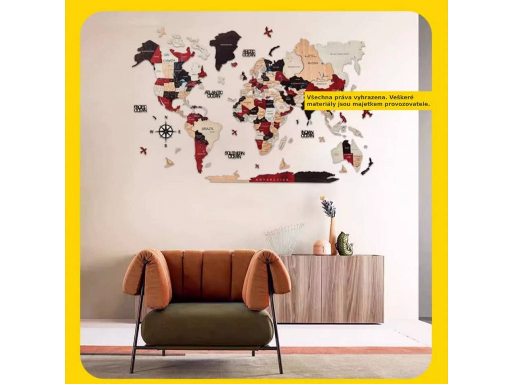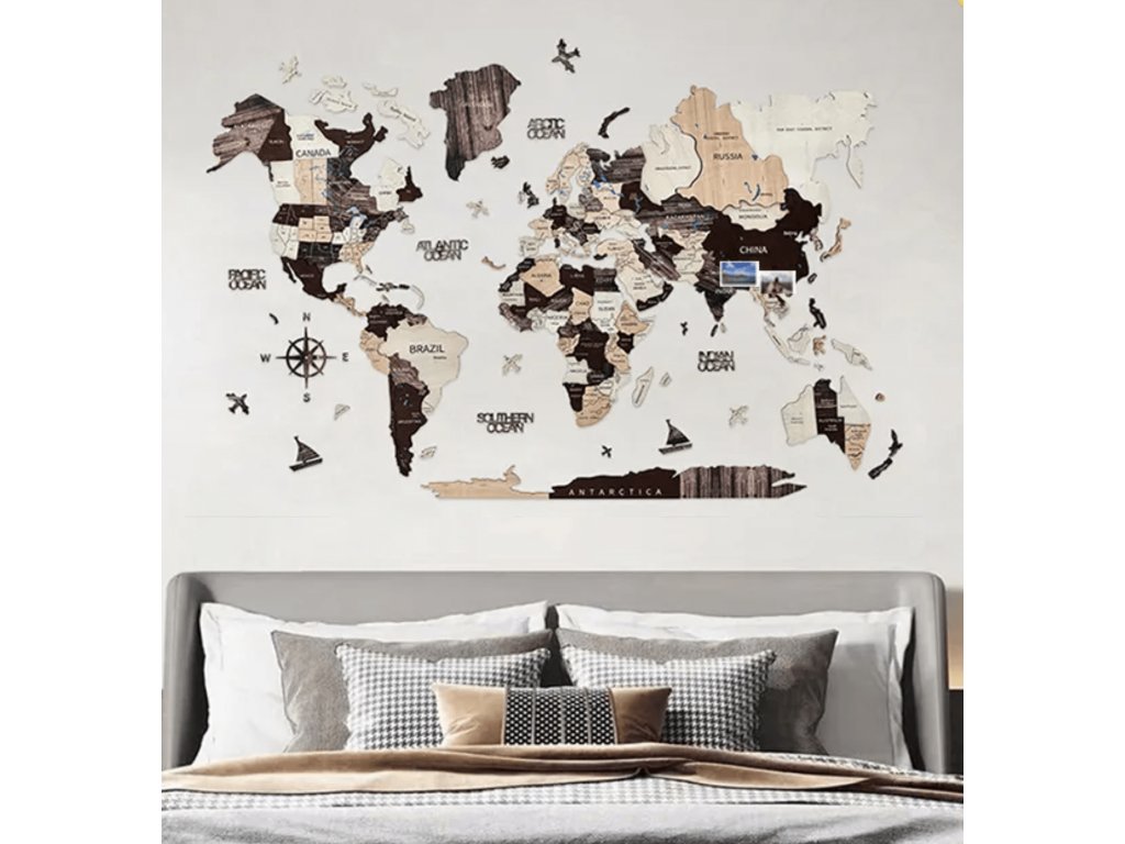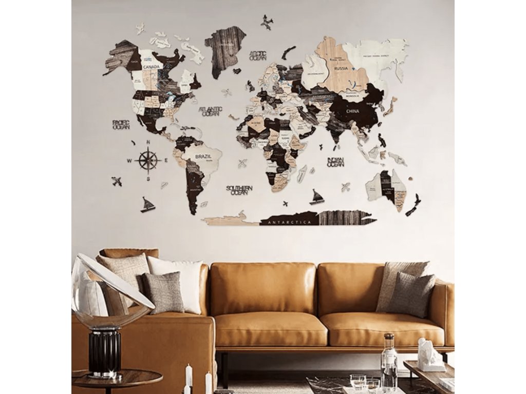 3D drevená mapa na stenu je jedinečná drevená dekorácia na stenu pre váš domov, kanceláriu alebo akékoľvek iné miesto. Táto 3D drevená nástenná mapa sveta vytvára 3D efekt vďaka jedinečným vyvýšeným plochám.
