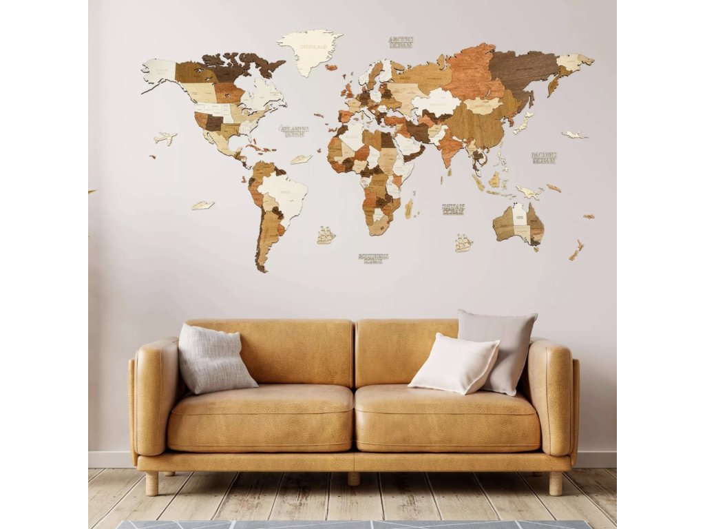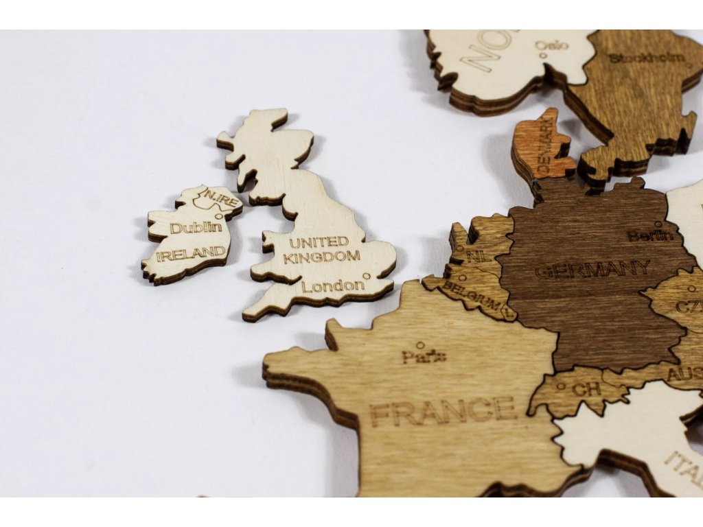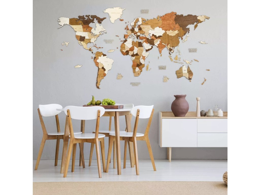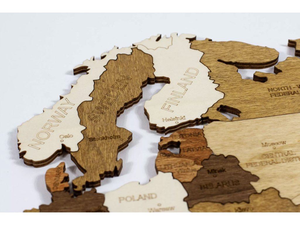 Každá mapa je starostlivo vyrezávaná a ručne maľovaná, čo zaručuje vysokú kvalitu a jedinečnosť každého kusu. Vďaka detailnej rytine mapa prináša autentický a elegantný vzhľad, ktorý sa hodí do každého interiéru.