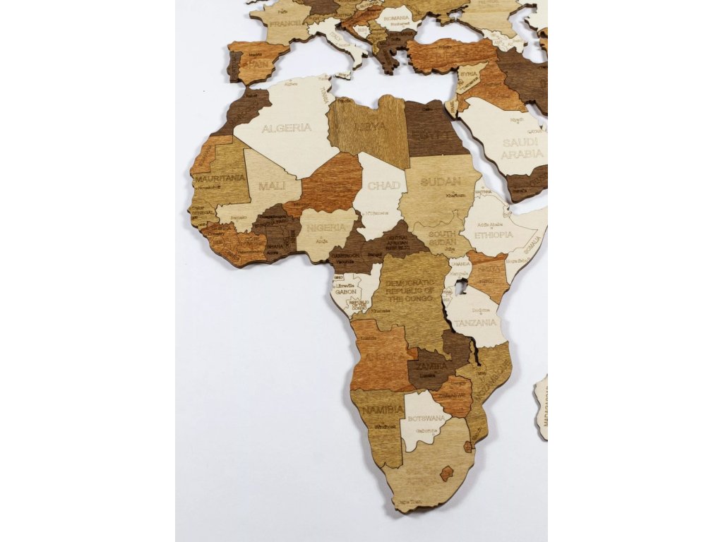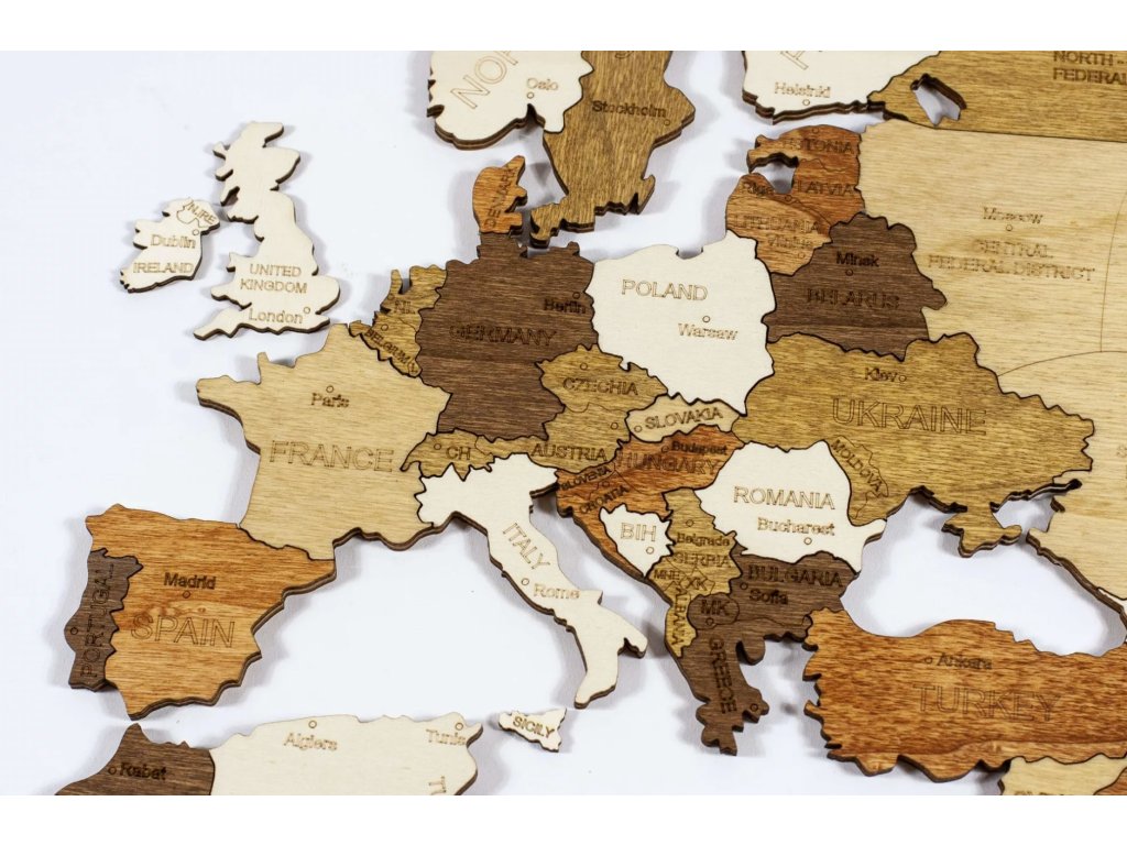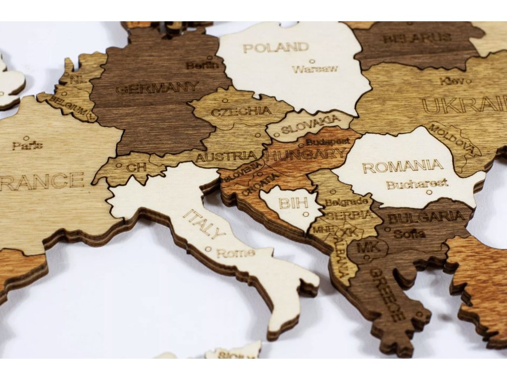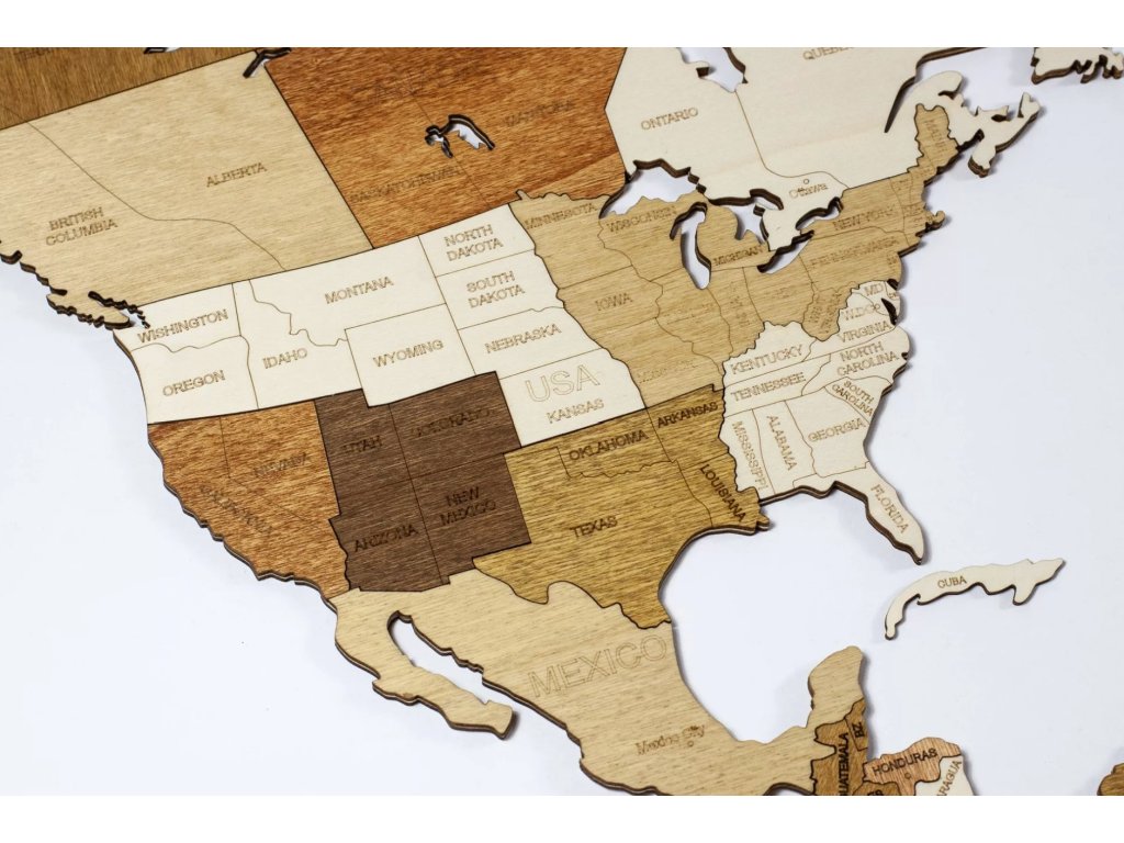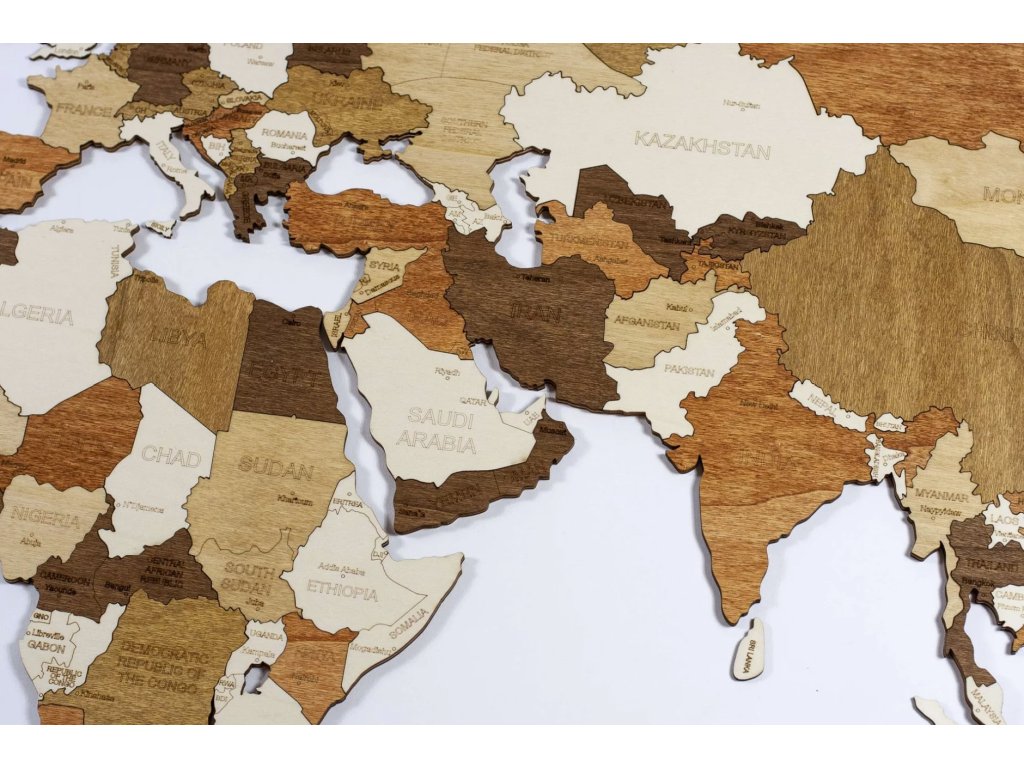 Tieto mapy sú vyrobené z prírodných materiálov, ktoré nie sú dokonalé, a štruktúra dreva reaguje na farbenie rôznym spôsobom. Mapy sú vyrobené ručne, vďaka čomu sú originálne. Preto sa farby jednotlivých krajín na rôznych mapách môžu líšiť podľa toho, čo vidíte na fotografiách online (aj obrazovky telefónov a monitorov zobrazujú farby odlišne).