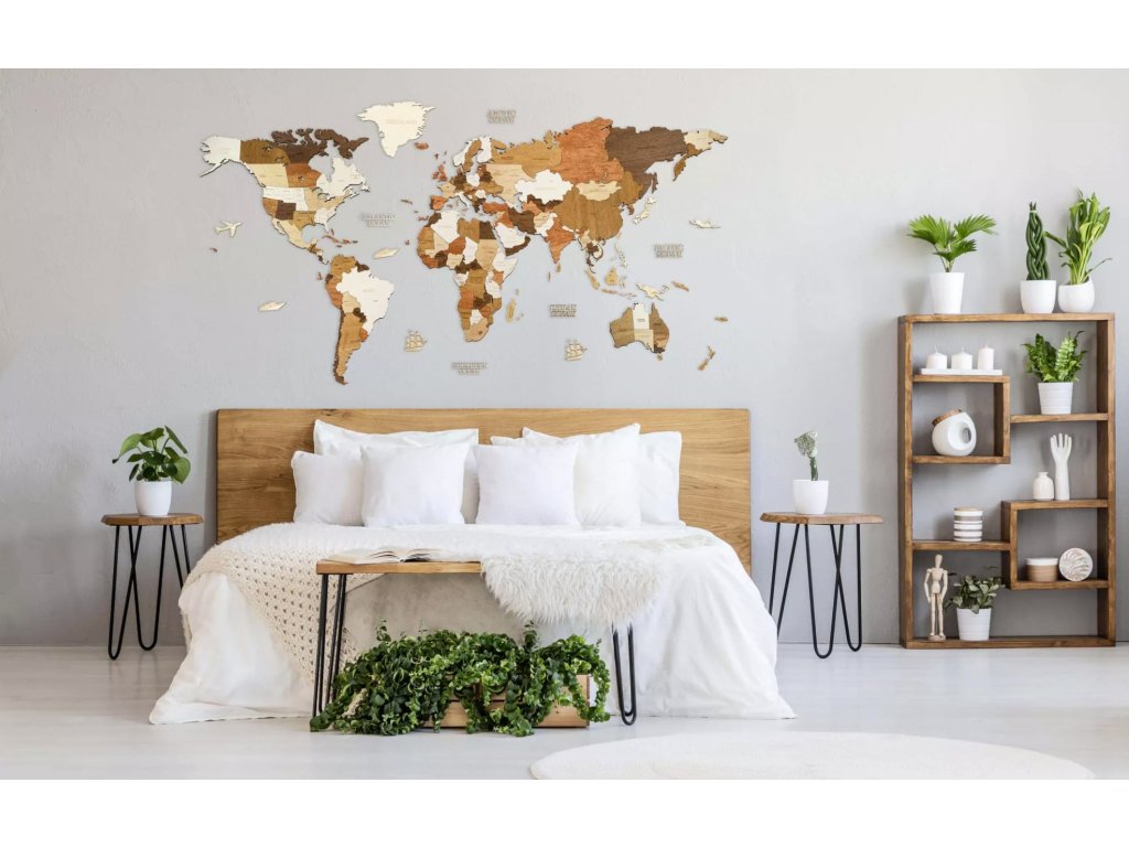 Nástenná drevená 2D mapa sveta - ručná výroba