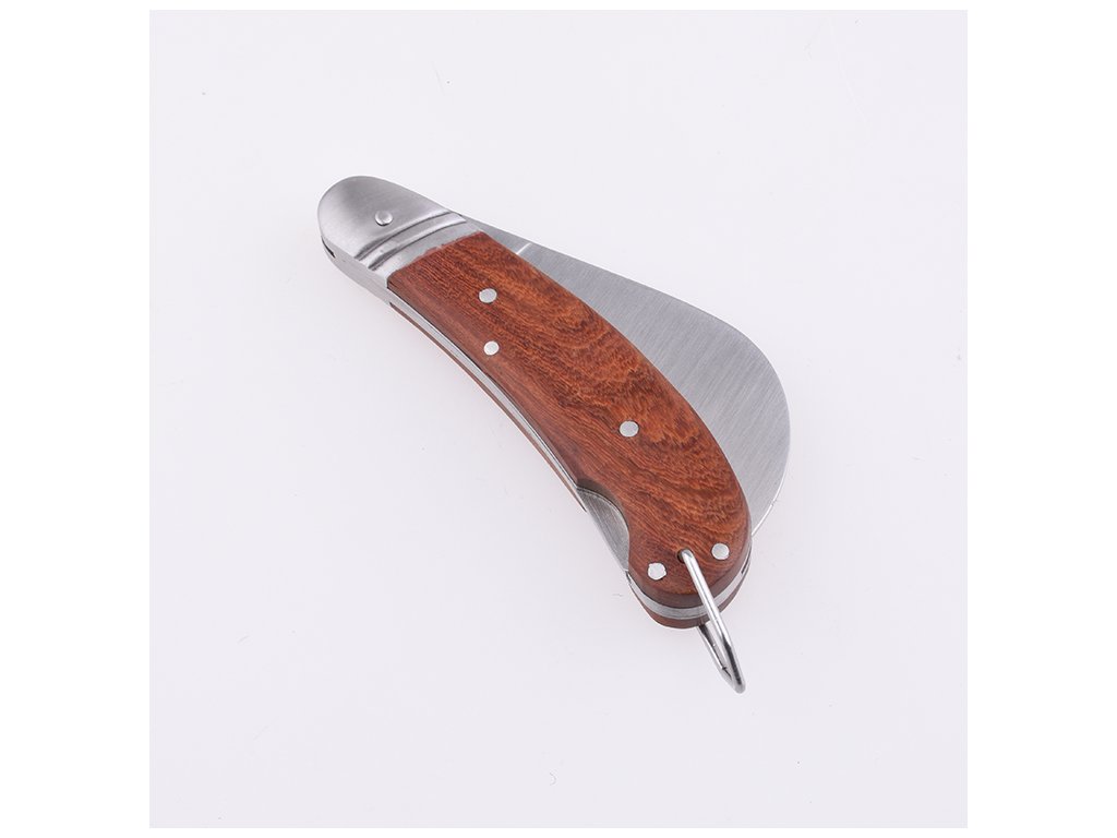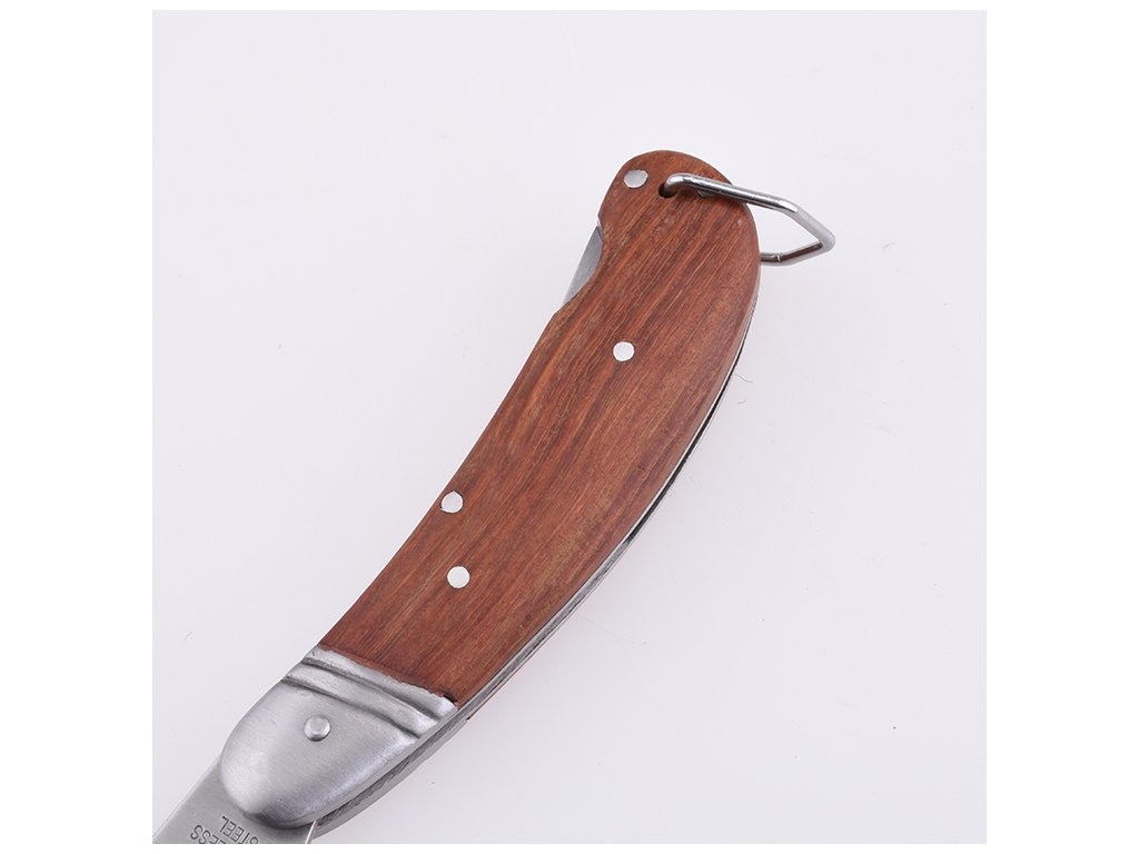 Ergonomická drevená rukoväť poskytuje komfort pri práci a minimalizuje únavu ruky. Vďaka skladaciemu mechanizmu nôž jednoducho zložíte a bezpečne uložíte do vrecka alebo batohu. Praktický otvor umožňuje zavesenie na opasok, takže ho máte vždy po ruke.