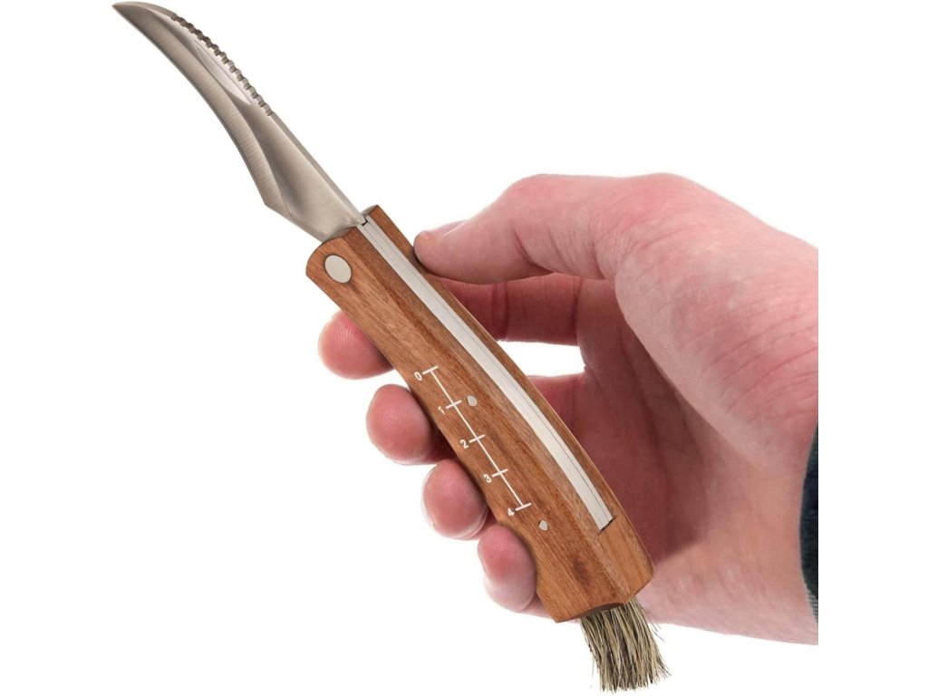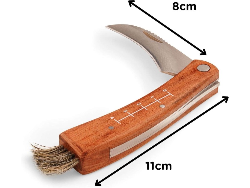 Správny hubár vie, že kvalitný nástroj je pri zbere húb kľúčový. Tento zahnutý hubársky nôž so štetcom vám uľahčí zber a čistenie húb priamo v teréne. Vďaka špeciálne tvarovanej nerezovej čepeli ľahko odrežete hubu priamo pri zemi bez poškodenia podhubia, zatiaľ čo jemný štetec vám pomôže odstrániť nečistoty. Skladací dizajn zaisťuje bezpečné prenášanie a vďaka drevenej rukoväti je nôž nielen praktický, ale aj štýlový.