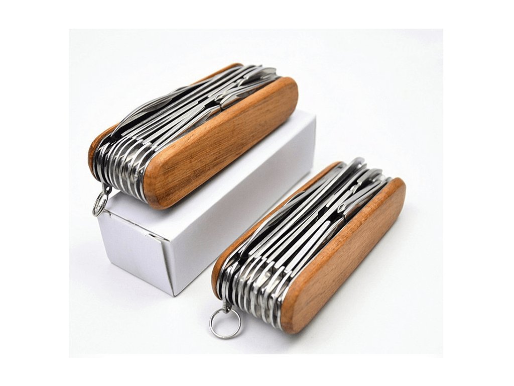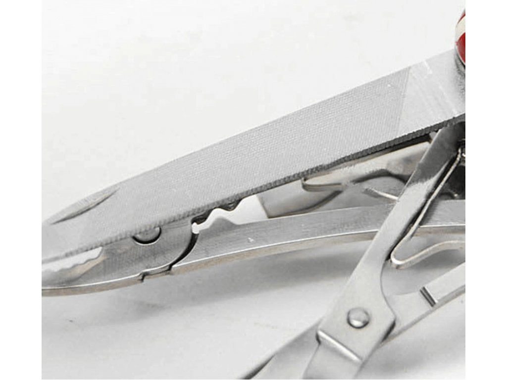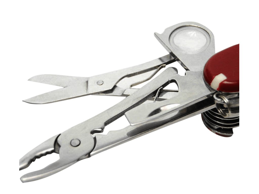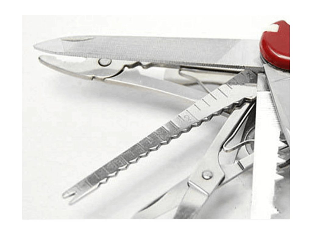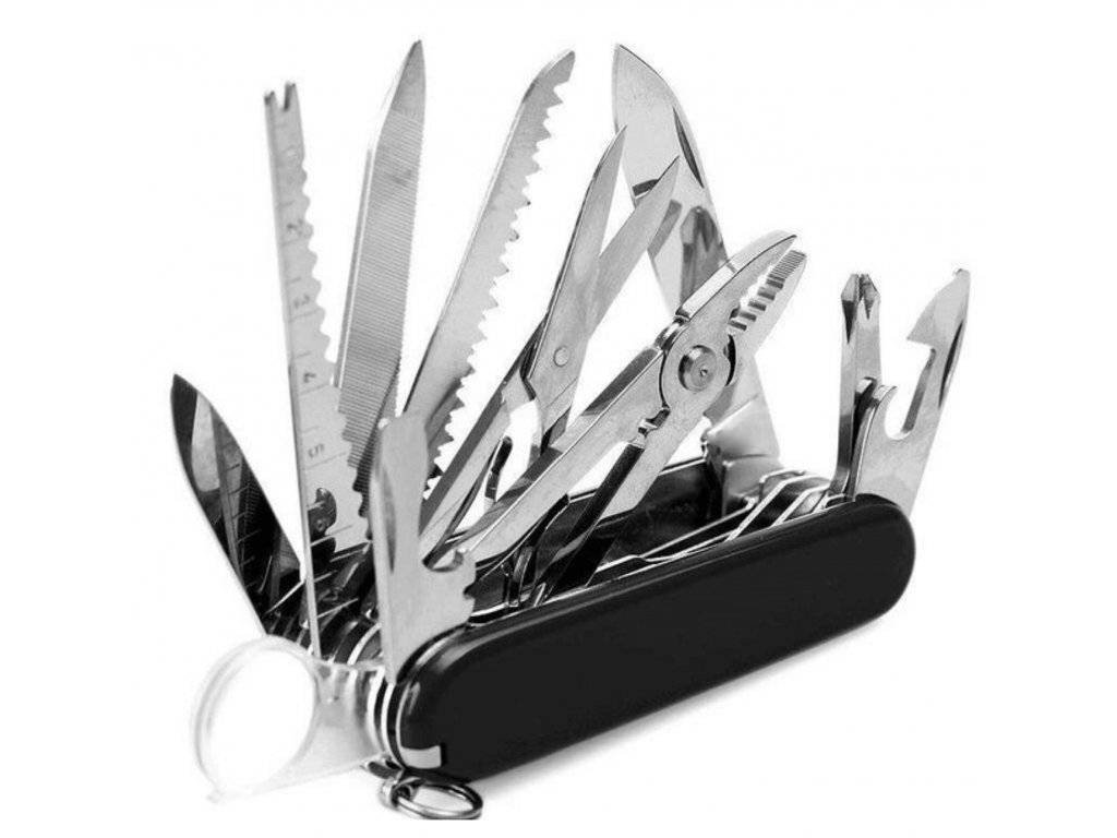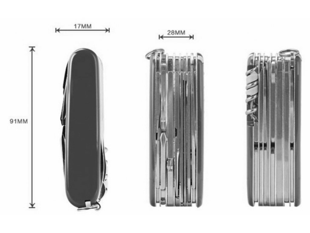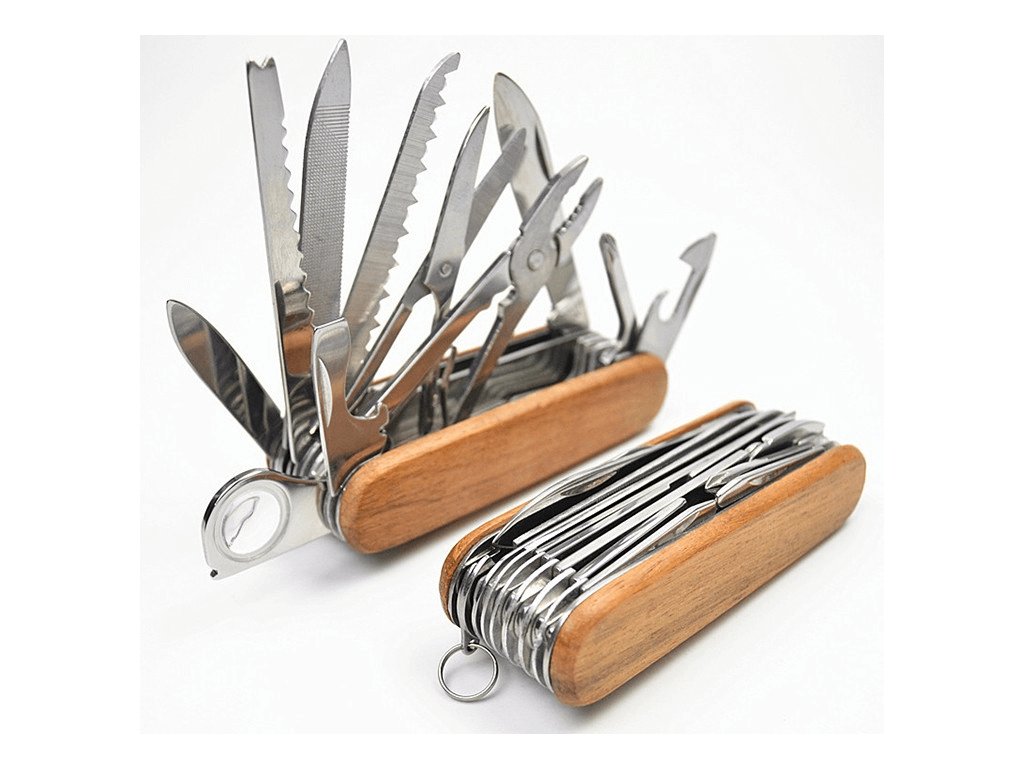 Tento vreckový nôž kombinuje hneď niekoľko dôležitých nástrojov: veľká čepeľ, malá čepeľ, vývrtka, otvárač na konzervy s malým skrutkovačom, otvárač na fľaše so skrutkovačom a odizolovaním drôtu, dierovací otvor, kľúčenka, nožnice, viacúčelové háky a píla na drevo. Je tak nenahraditeľným nástrojom na cestovanie, na doma alebo pri kempovaní.