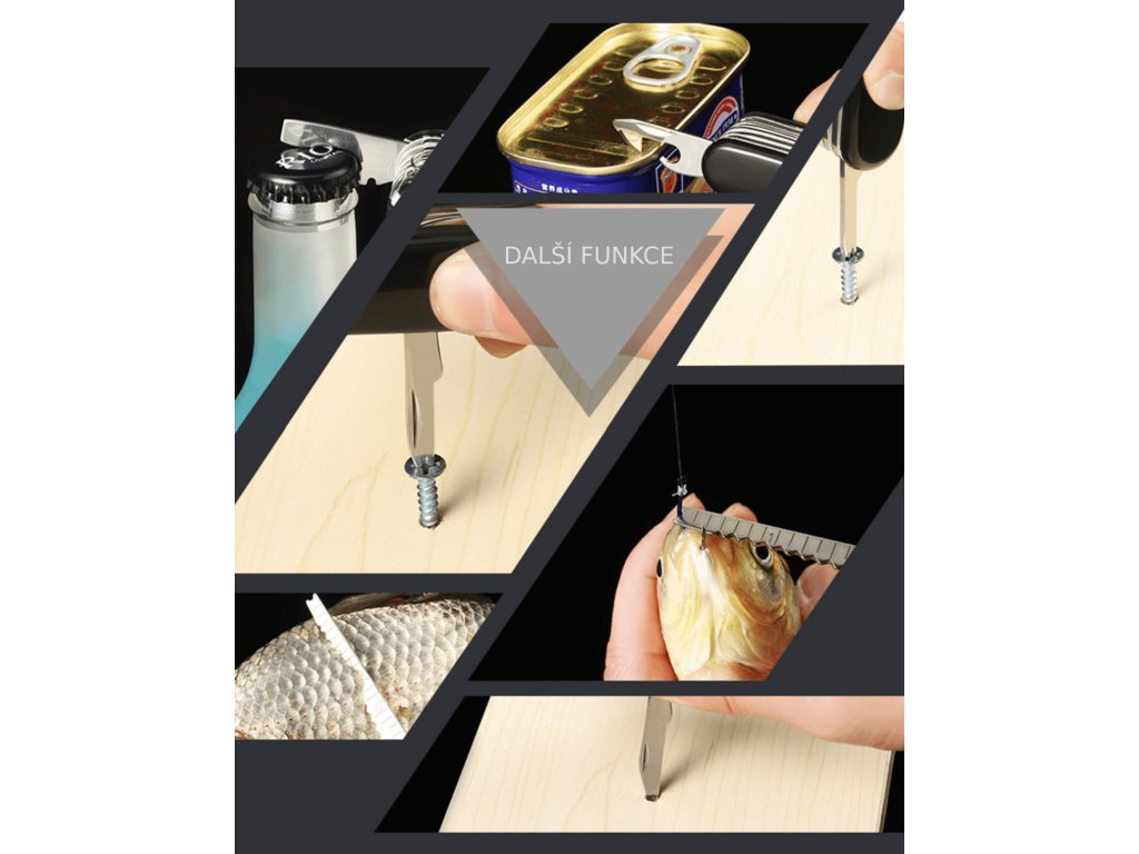 V prípade, že potrebuje otvoriť víno, konzervu, skrutkovať, strihať alebo pílit drevo, stačí použiť jediný nástroj. Tento vreckový nôž použijete na kempovanie, vonkajší prieskum, cestovanie, ako núdzovú sadu v nebezpečenstve, pri rybárčení, turistike a mnohých ďalších činnostiach.