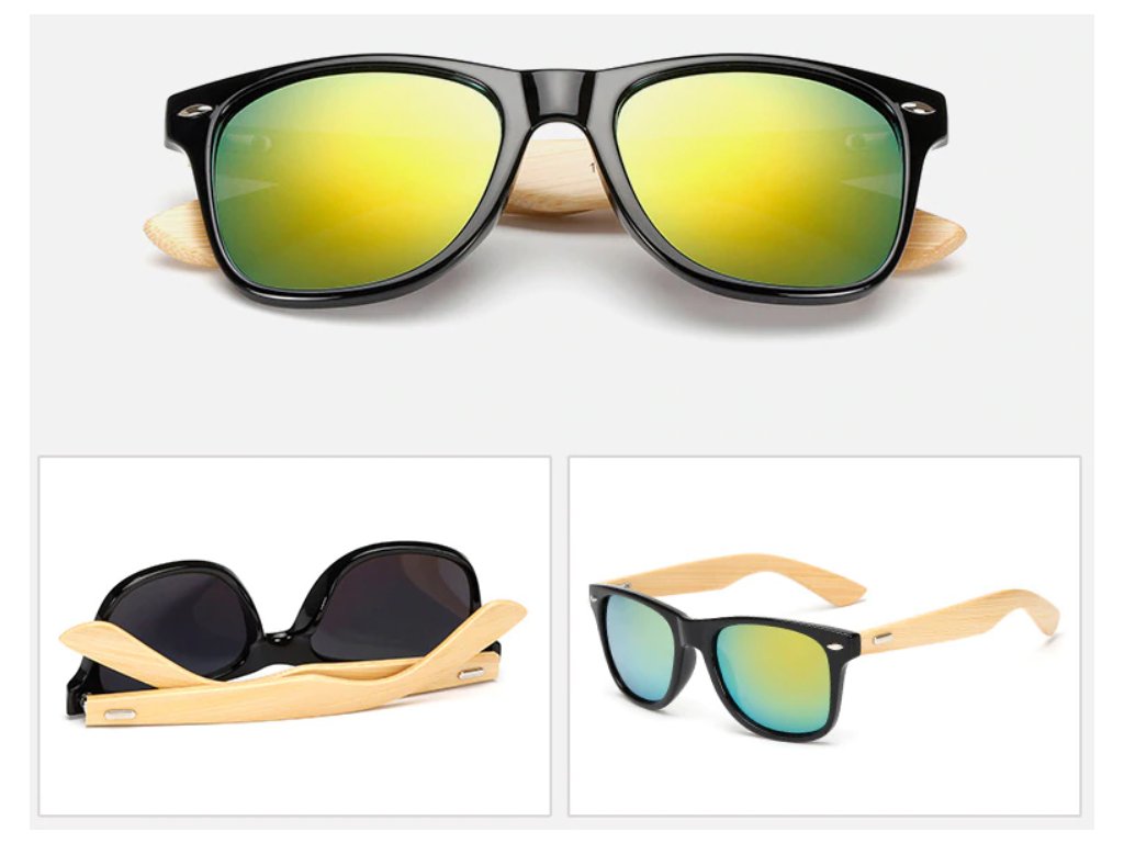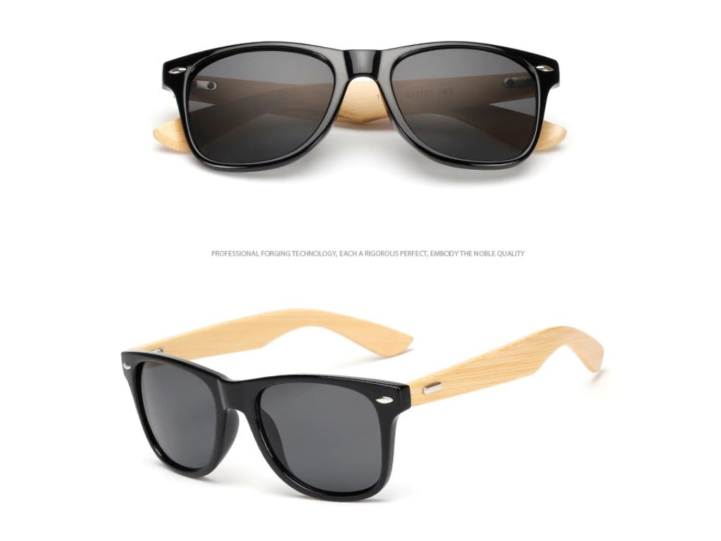 Drevené slnečné okuliare s bambusovými nožičkami