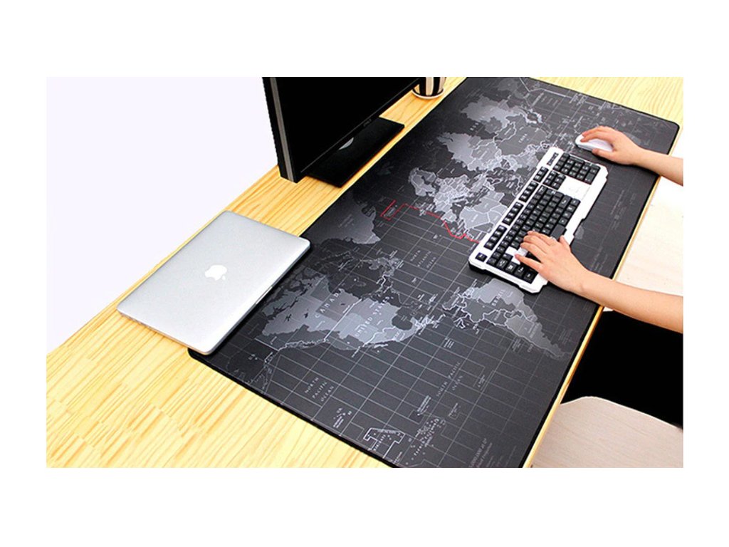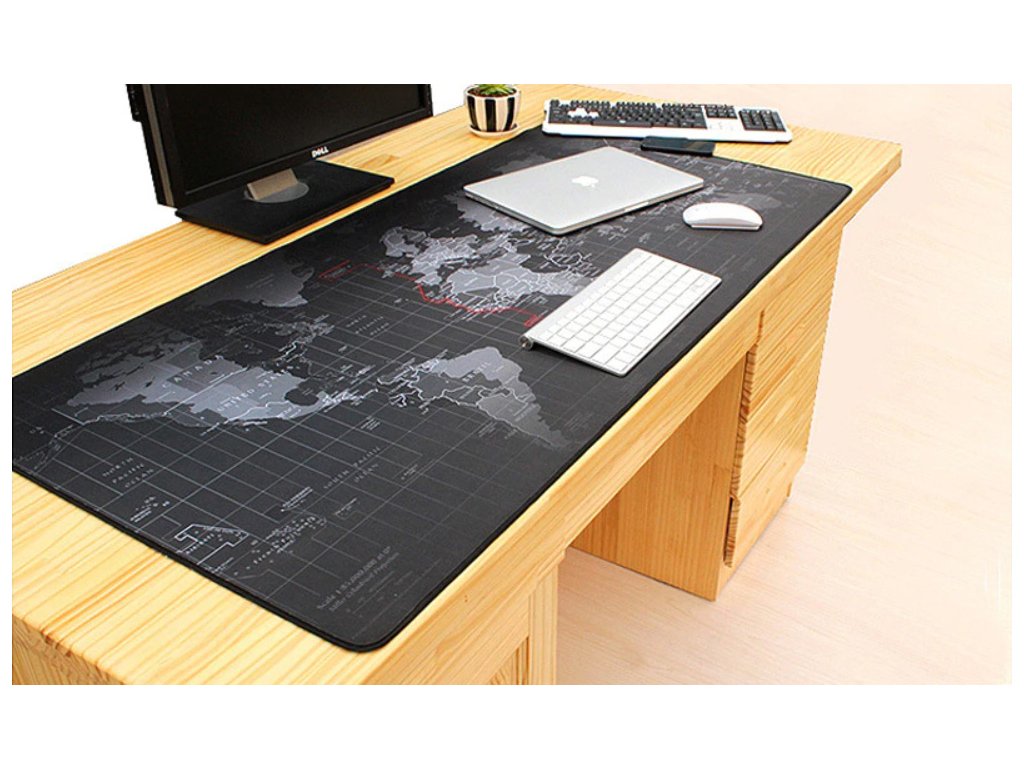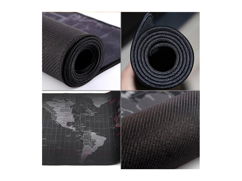 Podložka pod myš a klávesnicu nemá žiadne nápadné logo ani grafiku, ktorá by vás počas ovládania počítača rozptyľovala. Protisklzová gumová základňa naopak veľmi dobre priľne na povrch vášho stola a zabraňuje posúvaniu, ktoré by mohlo vašu prácu znepohodlňovat. Dizajn podložky s mapou sveta navyše poteší všetkých cestovateľov aj začínajúci dobrodruhov.