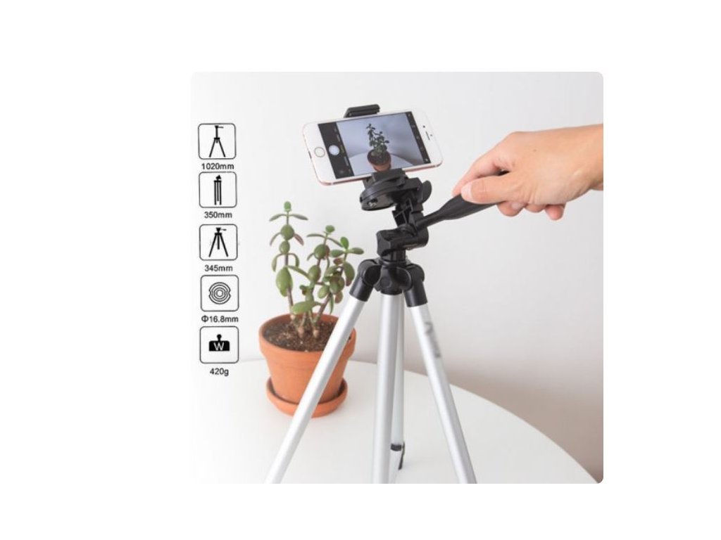 Kvalitný statív s držiakom pre mobilný telefón v strieborno-čiernej farbe. S týmto statívom si urobíte fotografiu kdekoľvek a kedykoľvek bez nutnosti oslovenia náhodného okoloidúceho!