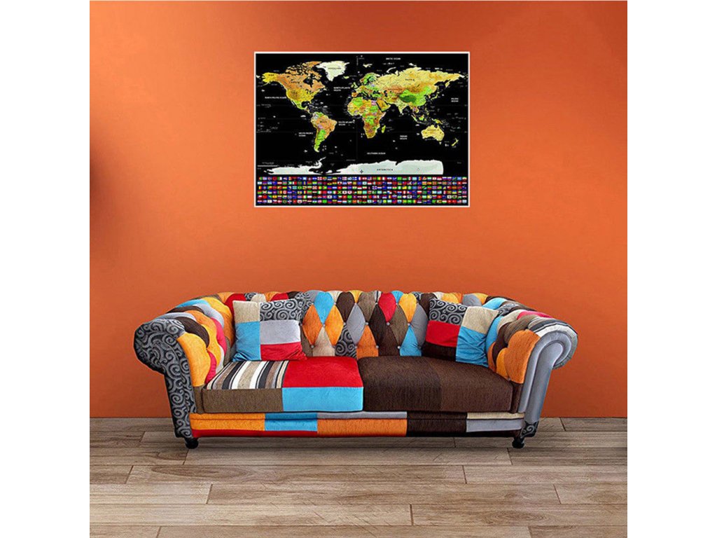 Stieracia mapa je exkluzívna aj tým, že v spodnej časti obsahuje aj všetky vlajky sveta. Pri stieraní jednotlivých krajín tak môžete zotrieť aj vlajku krajiny, ktorú ste práve navštívili.