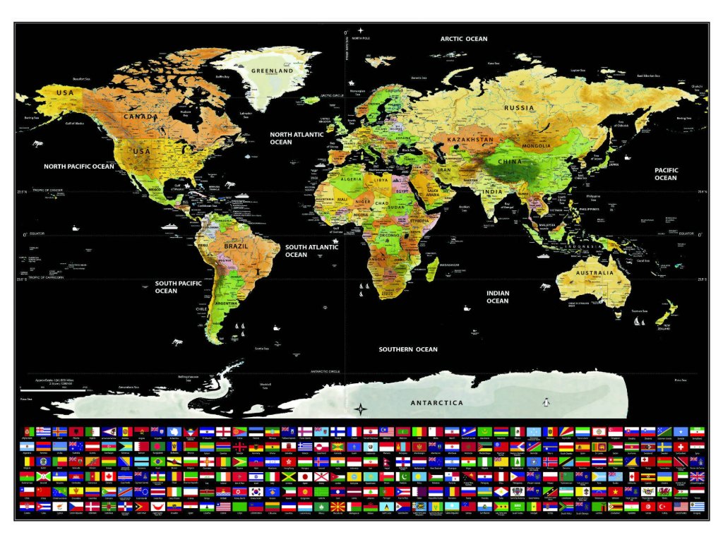 B2B Deluxe Stieracia mapa sveta s vlajkami